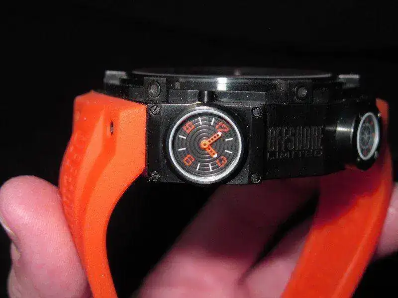 es un reloj OFFSHORE LIMITED, y el modelo es "force 4" es un modelo gigante y bastante llamativo!