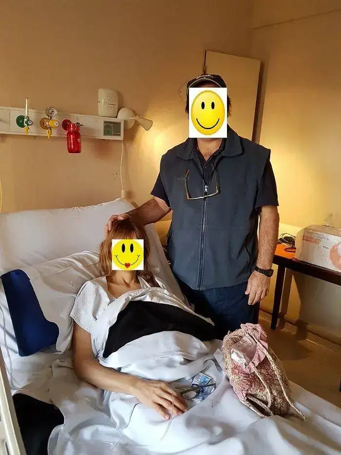 Ahí dejo un par de fotos en el sanatorio, antes y después de la cirugía, lamentablemente tengo que tapar la cara porque no tenemos dientes.... jaja naa, mentira, ya saben porque es, ni falta hace que lo aclare.