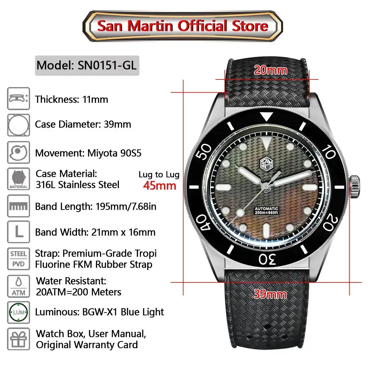 San Martin Offizielle 39 mm Guilloche MOP Zifferblatt Miyota 90S5 Sportuhr Automatische mechanische Saphirlünette 20 ATM Leuchtend SN0151 - AliExpress 1511