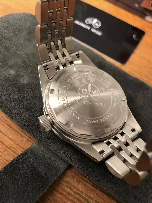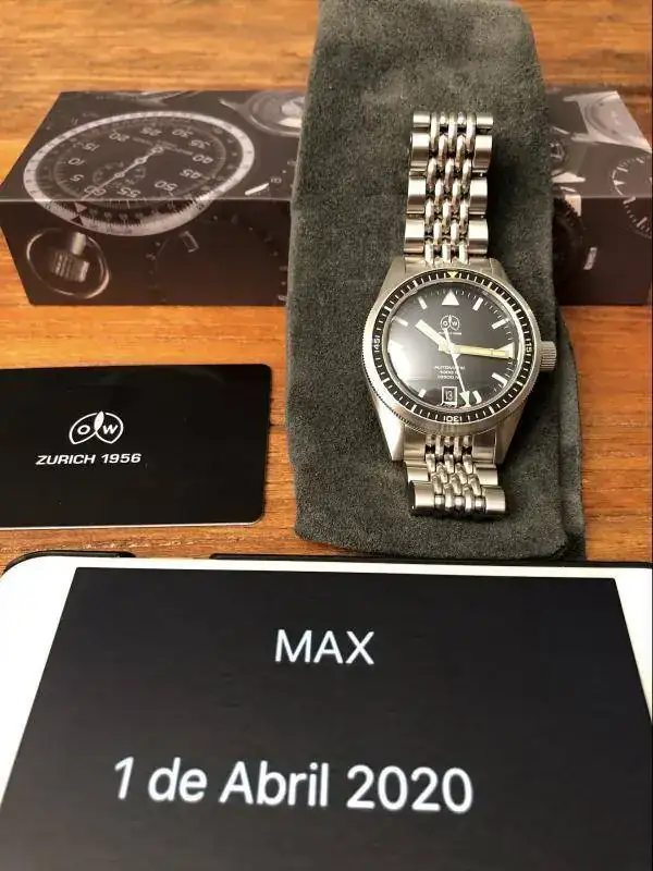 - Movimiento: Automatico, los detalles los pongo en inglés para no traducirlos mal: "It is powered by the robust modified ETA 2824-2 OW5, which is equipped with an Ollech & Wajs Zurich 1956 engraved main plate, and OW machined rotor."