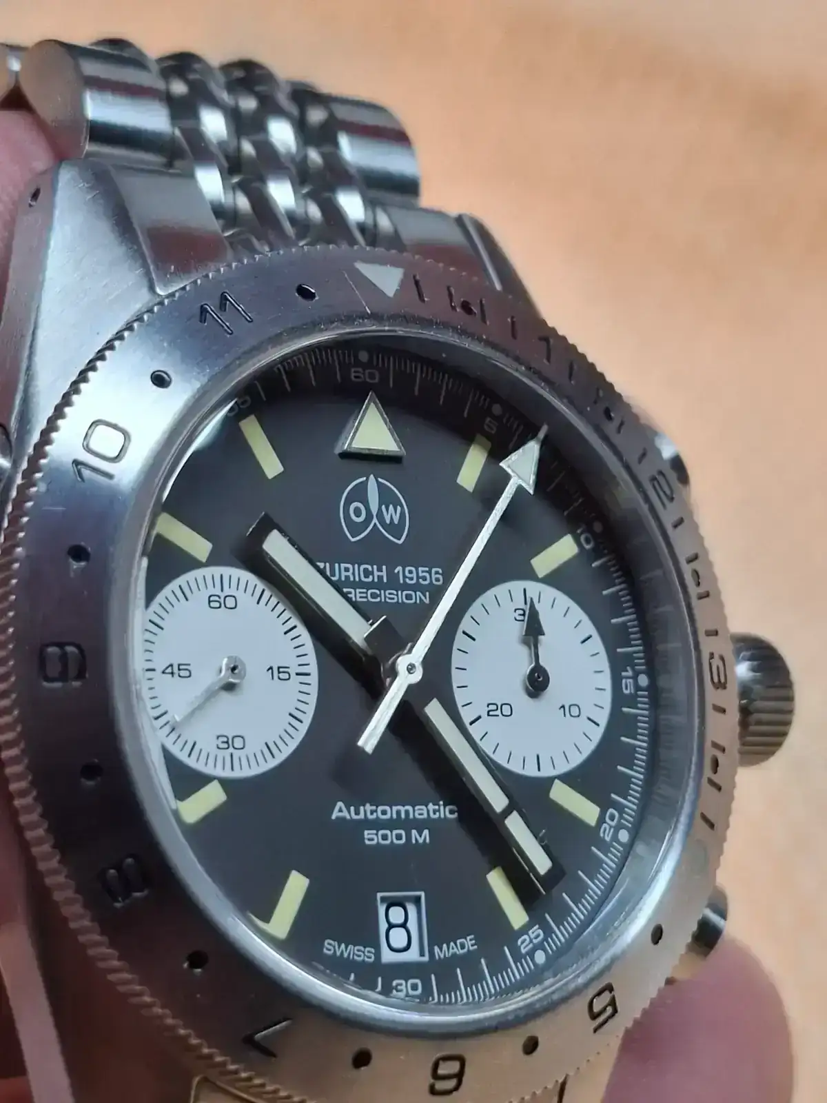 El Ollech & Wajs (OW) Navichron es un cronógrafo de buceo de alto rendimiento que revive un modelo icónico de 1967. Se distingue por ser uno de los pocos cronógrafos capaces de resistir profundidades de hasta 500 metros (50 ATM).