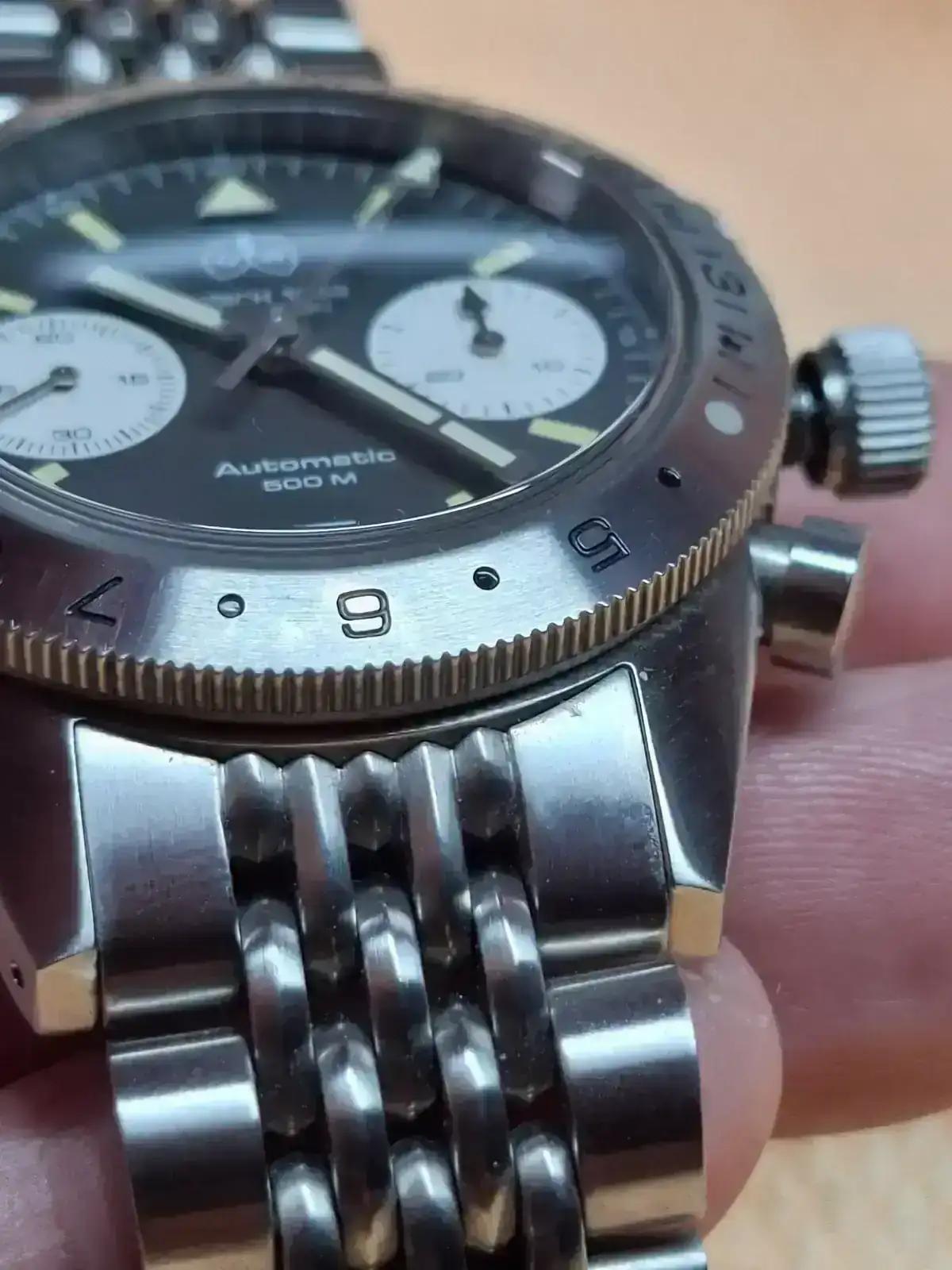 Es sumergible 500m siendo cronógrafo.