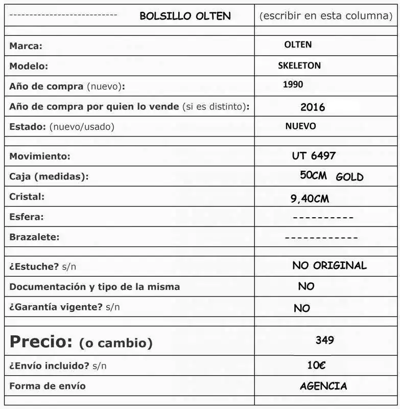 (EL PRECIO ACTUAL DEL RELOJ EN OLTEN ES DE 1.200€ + ENVÍO).