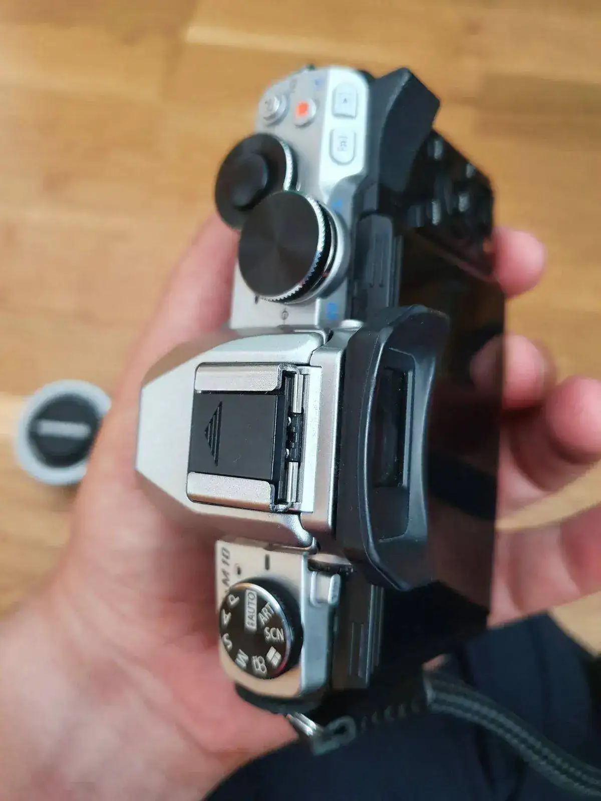- Cámara Olympus OM-D E-M10 con tapas