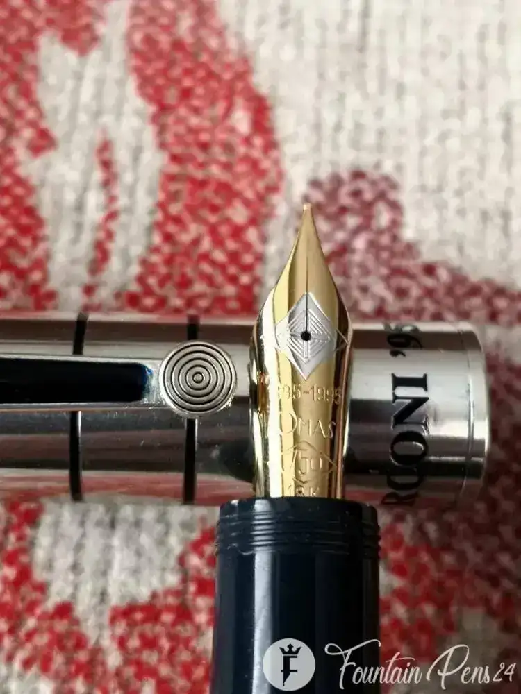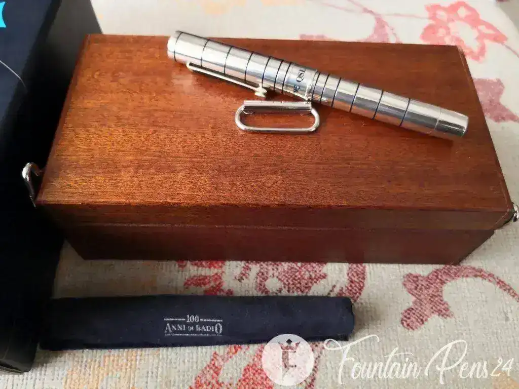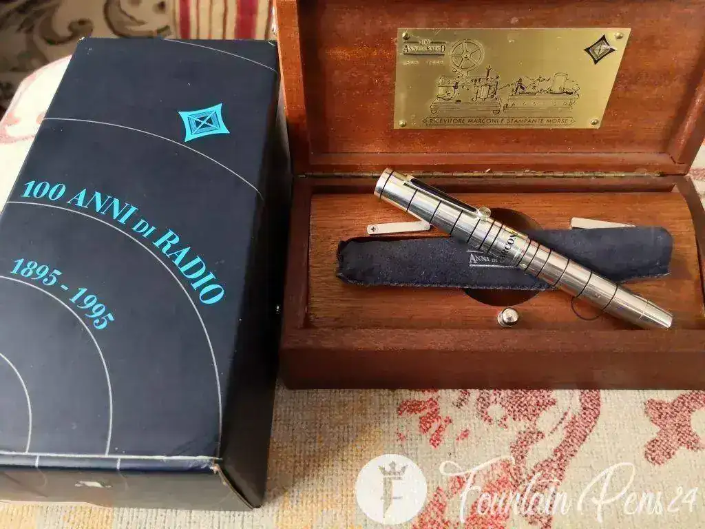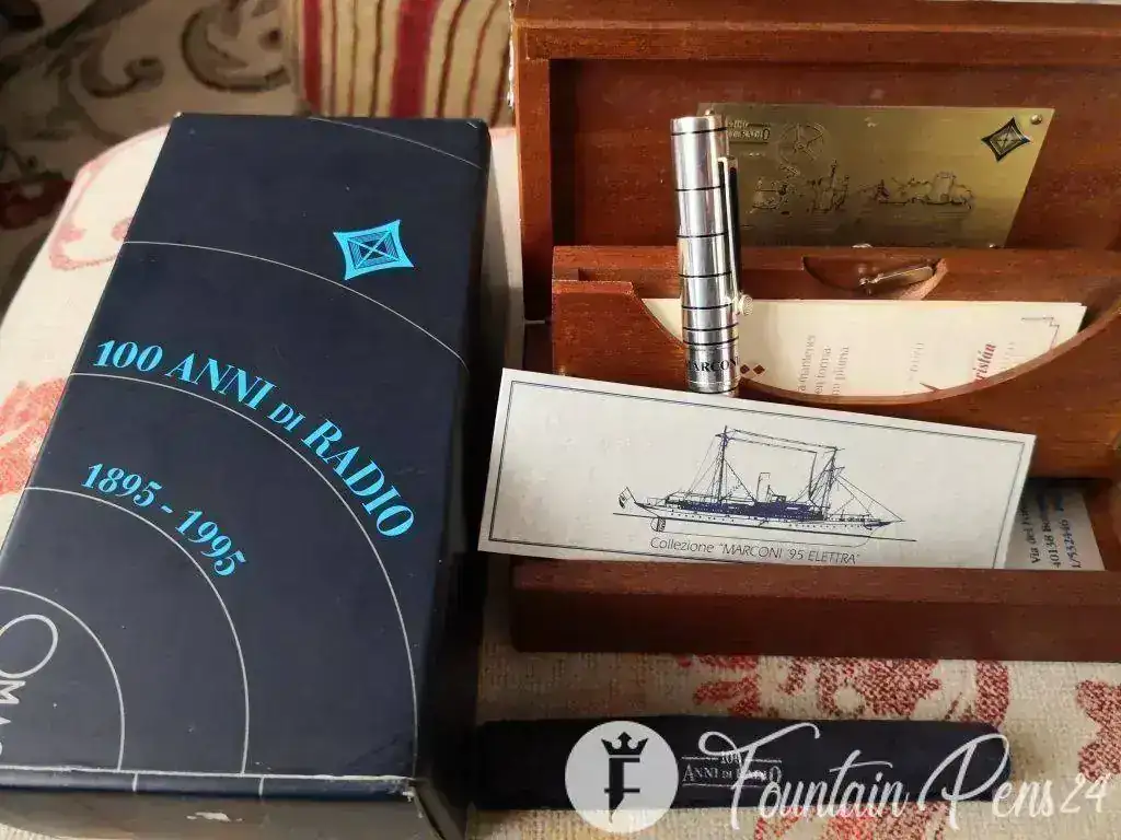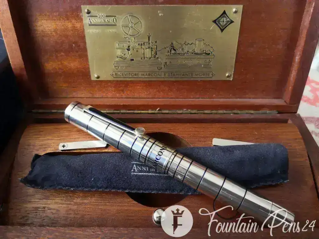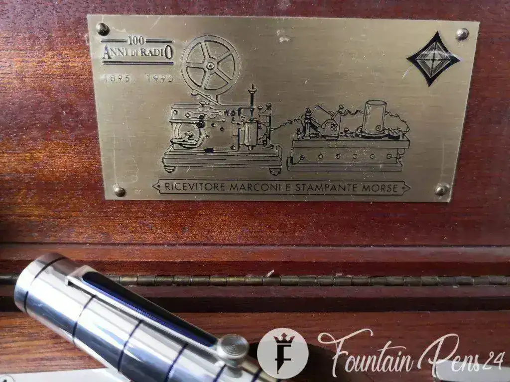 Elaborada en plata y esmalte azul, esta versión fue creada en 1995 para honrar cien años de tecnología de radio. La tapa y el cuerpo de esta estilográfica están grabados con ranuras graduadas que reflejan las señales de radiofrecuencia. El clip está diseñado con una tecla de telégrafo y el plumín de oro de 18 k. lleva el logo oficial de la Fundación Marconi.