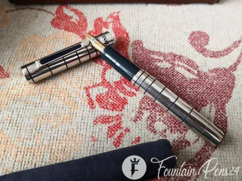 Esta Estilográfica es Poco vista, ya que combina el acabado en plata con laca de color azul, las otras de la misma edición son o de resina azul o solo de plata.