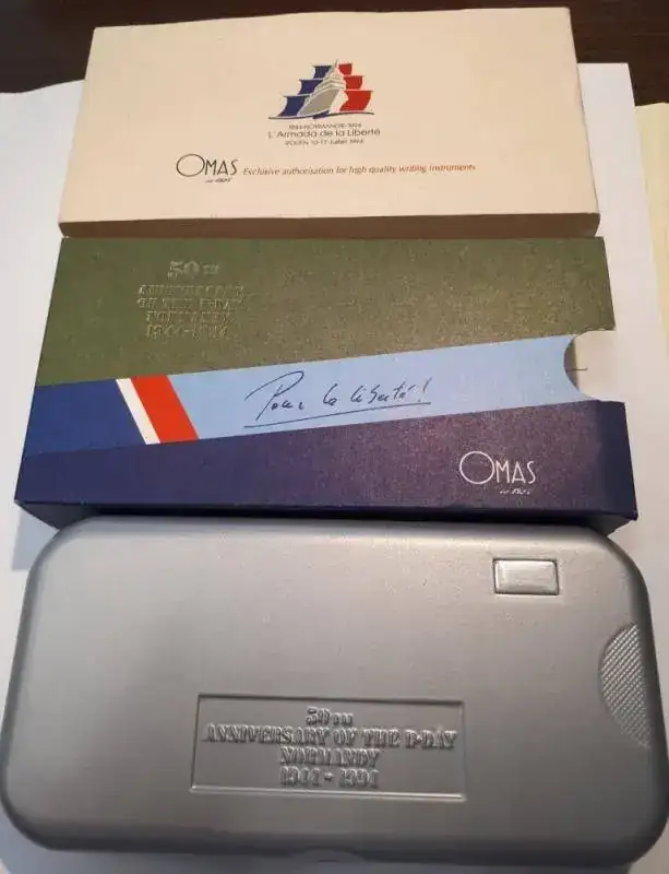 A la venta estilográfica OMAS D-Day. Es la Edición Especial por el 50 aniversario del Día D., de la que fabricaron 5300 unidades, siendo esta la nº serie 0436. Existen multitud de reviews en internet por si queréis más información.