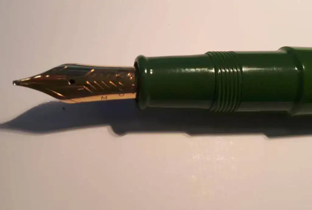 Tiene una longitud de 14 cm, y el plumín es de oro 18k, en punto M.