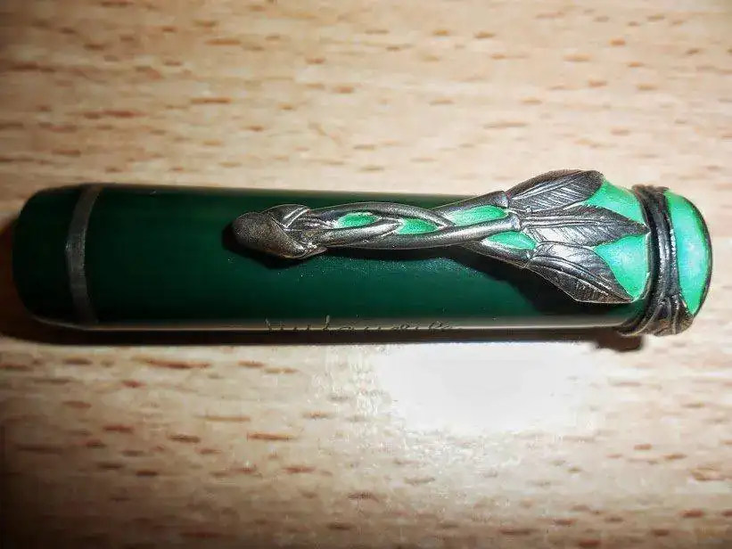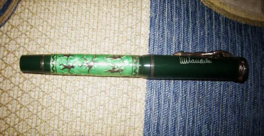En la corona se observa en relieve la cifra 80 realizada en plata maciza al igual que el clip que representa un motivo vegetal con apliques lacados; en el lateral del capuchón encontramos la firma del homenajeado. En el culote se haya grabado el número de pluma sobre el total y la carga es de embolo.