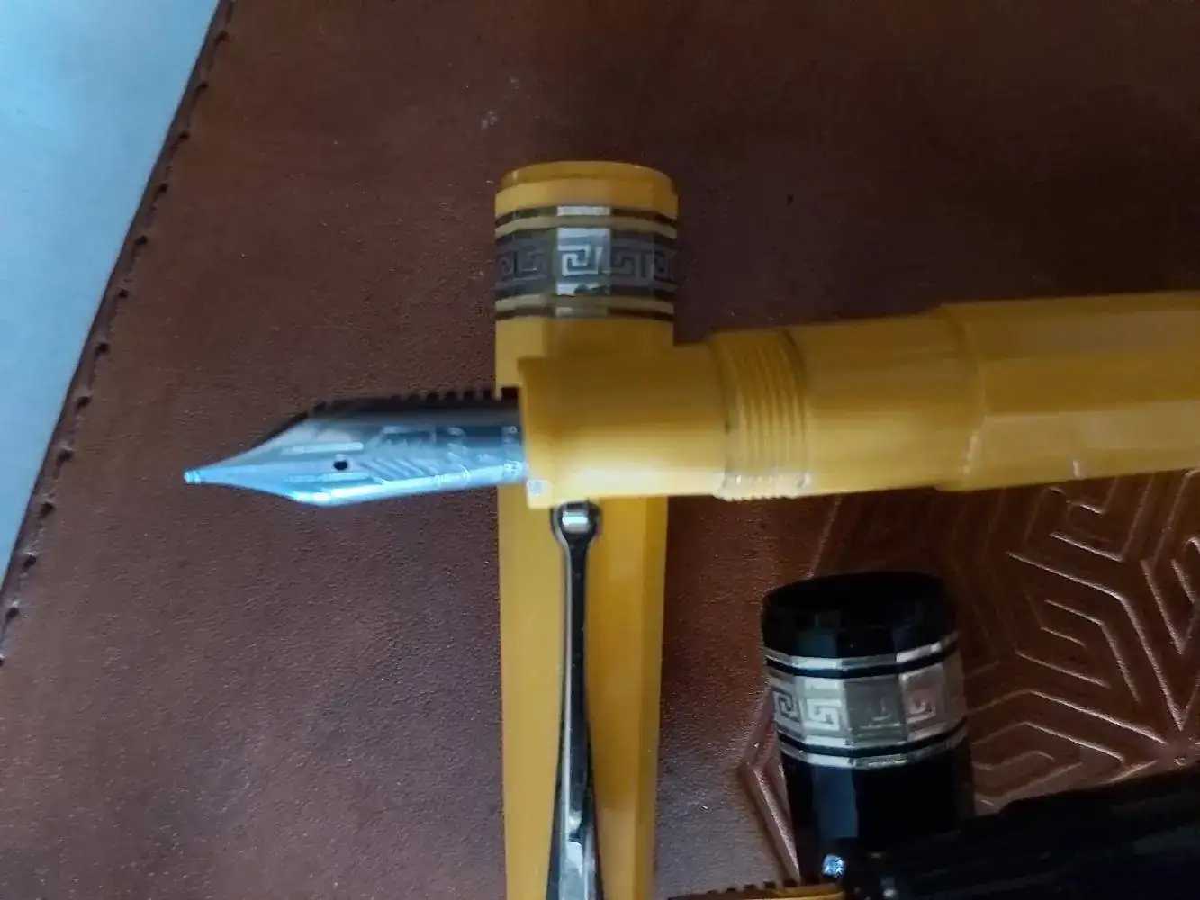 Aquí luciendo su plumín de oro, punto M, con bastante flujo, por lo que dependiendo del papel puede hacer charcos: