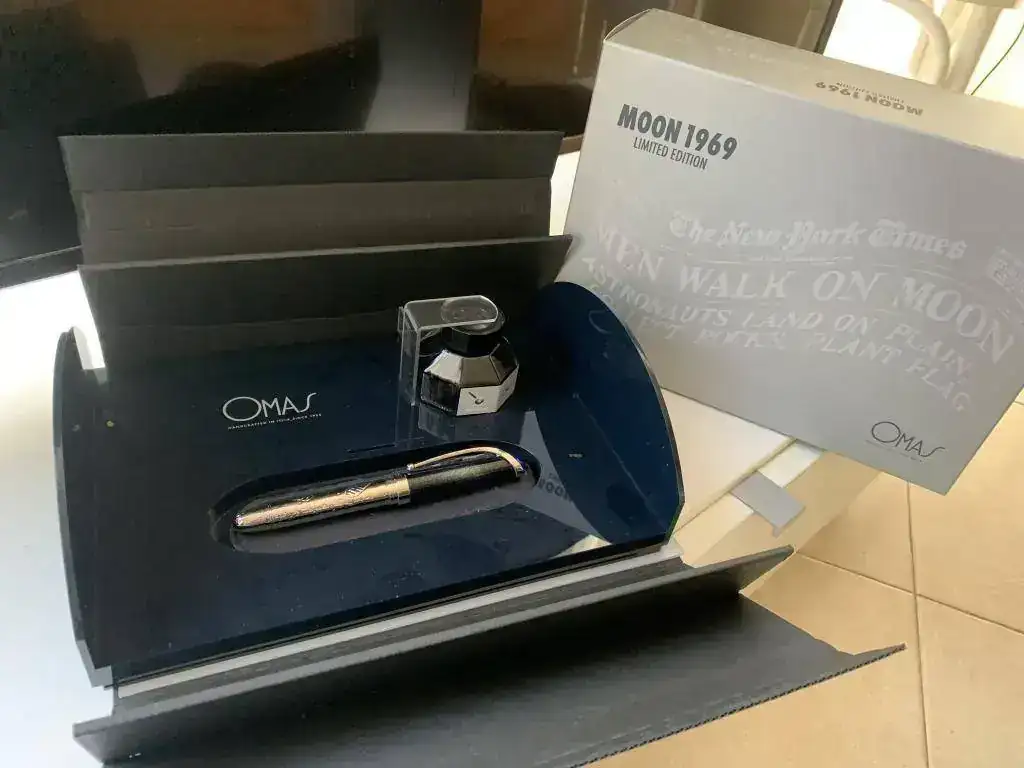 En lo que a vista se refiere, en el cañón y la pluma se observan las huellas de Armstrong pisando la luna, en el clip la cuenta regresiva de 5 a 0 para el despegue del transbordador , en el aro al final del cañon se lee lo siguiente: Italy 21 July 1969 - Apollo 11