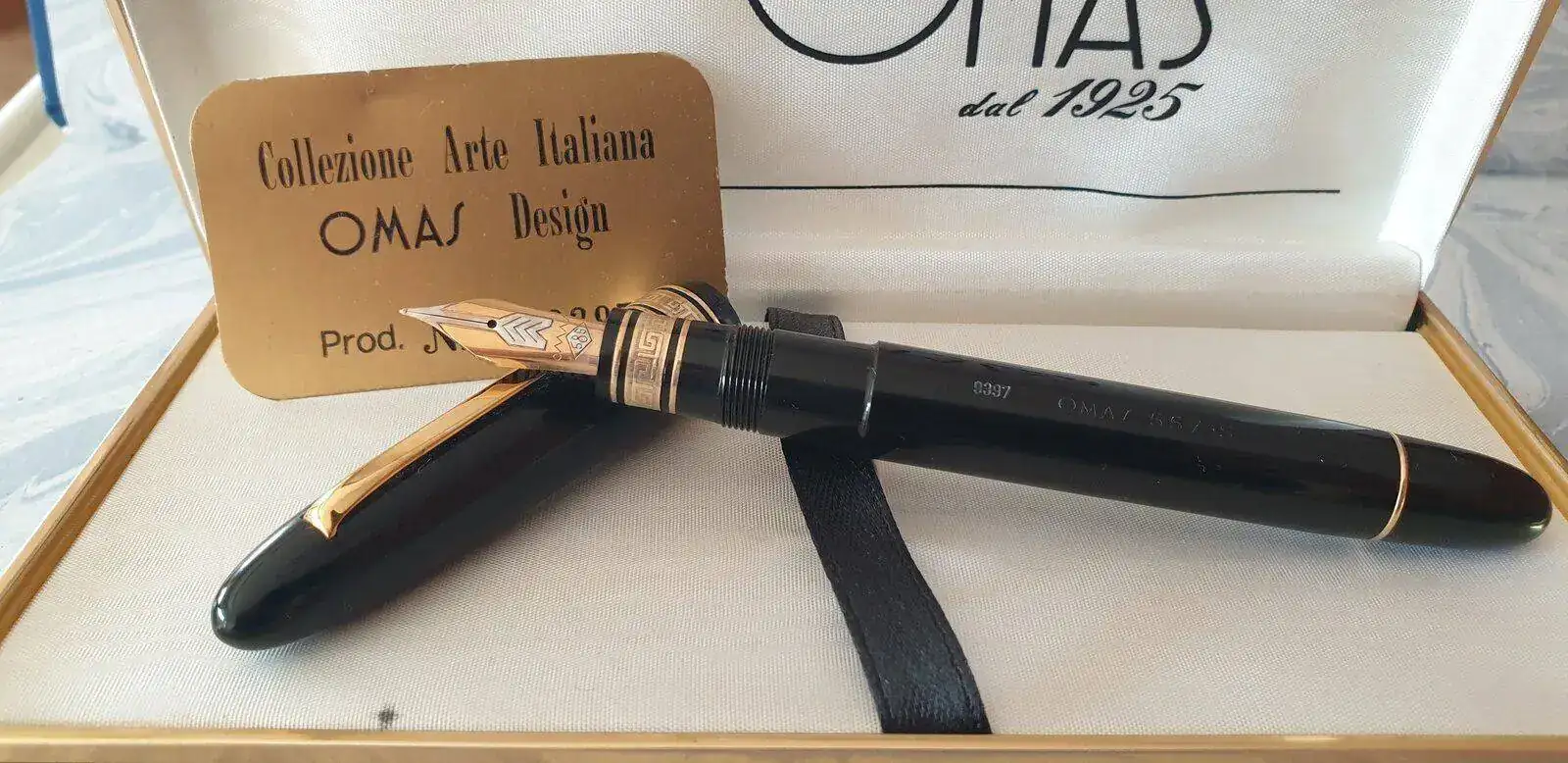 Se trata de una Omas Ogiva Extra 557 S. La de mayor tamaño (147mm) con un plumín F de oro de 14k que es una delicia de escritura.