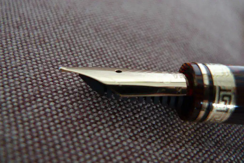 Debido a un problema del plumín original F, solicitéel cambio del mismo por un M , que es con el que ha vuelto de Italia y el que se puede ver en las fotos.