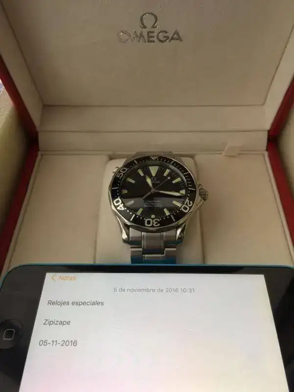 Buenos días a todos, con mucha pena saco a la venta éste cuidadísimo "Negrito" de cuarzo con caja y armis en acero del año 2012 con toda la dotación completa de cajas, manuales, tarjetas de garantía y eslabones sobrantes del reloj, es decir tal cual como cuando fue comprado hace 4 años, como sabréis, es la versión más buscada de ésta generación de Seamaster, una pequeña referencia a sus caraterísticas: