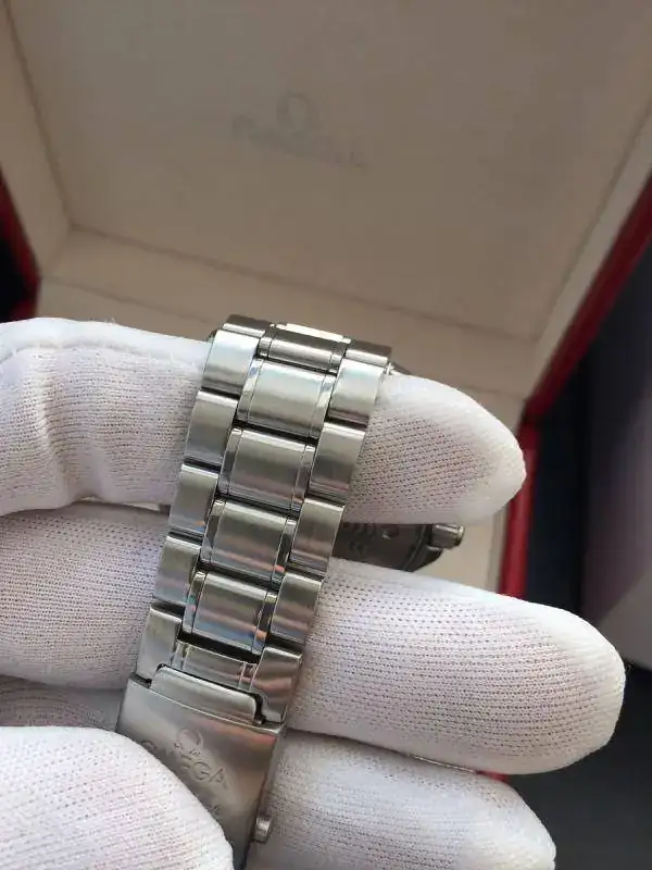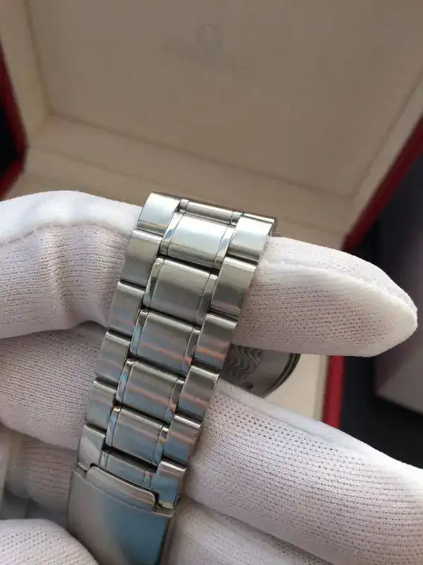 - Movimiento Omega 1538 con acabado rodiado (6 rubíes)