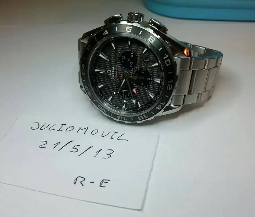 Se vende OMEGA SEAMASTER AQUATERRA CHRONOGRAF GMT con set completo garantia y con brazalete. el estado yo diria al 99 por 100 el reloj y al 99.9 por 100 el brazalete. recordar que el p.v.p de este reloj con el bazalete es de 6.900€.bueno aqui unas fotos de este precioso reloj que el que lo quiera yo pido 3.750€ gastos incluidos por NACEX