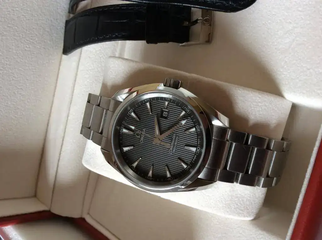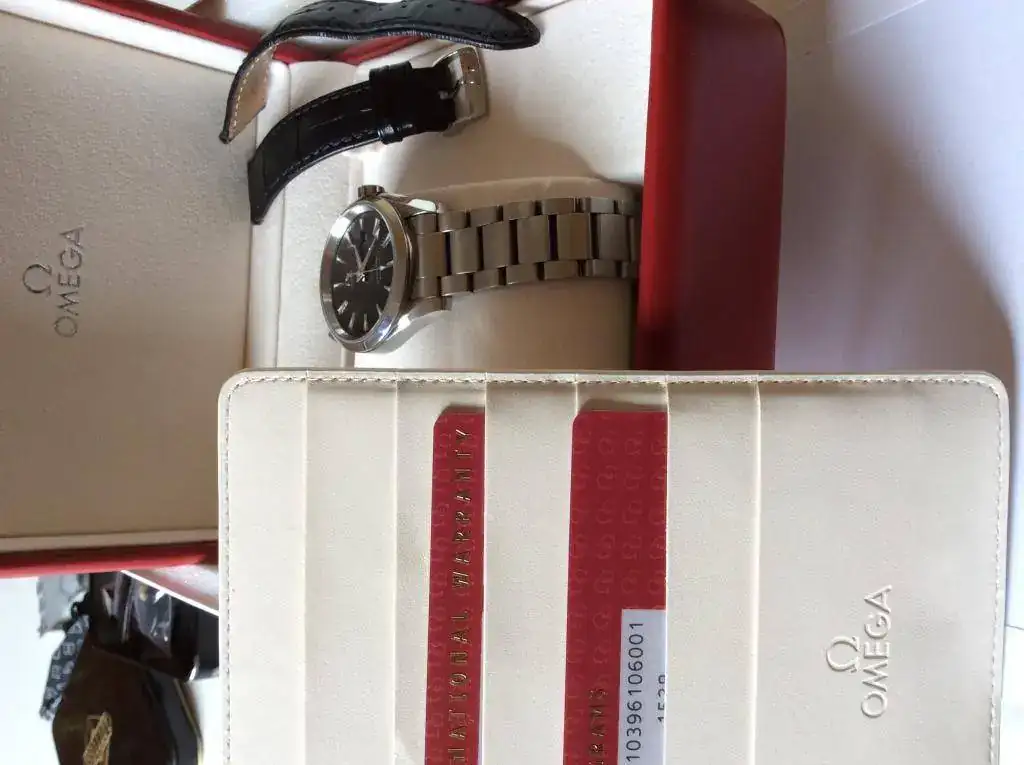 Pongo en venta mi Omega Aquaterra cuarzo, muy nuevo y en un estado realmente bueno. Funcionamiento perfecto, cristal impoluto, armis completo, dotación completa, garantía en vigor hasta diciembre 2017. Estéticamente solo las típicas microrayitas del uso normal, las propias del cambio de correa por armis y viceversa, y una marca más destacable en un eslabón; es superficial pero sí es algo más visible (un cepillado ligero lo dejaría como nuevo, pero yo no haría; no merece la pena ni por asomo).
