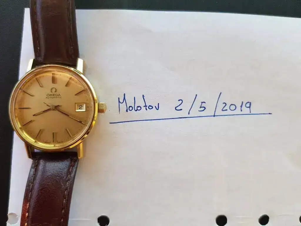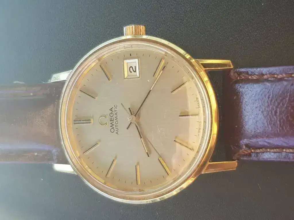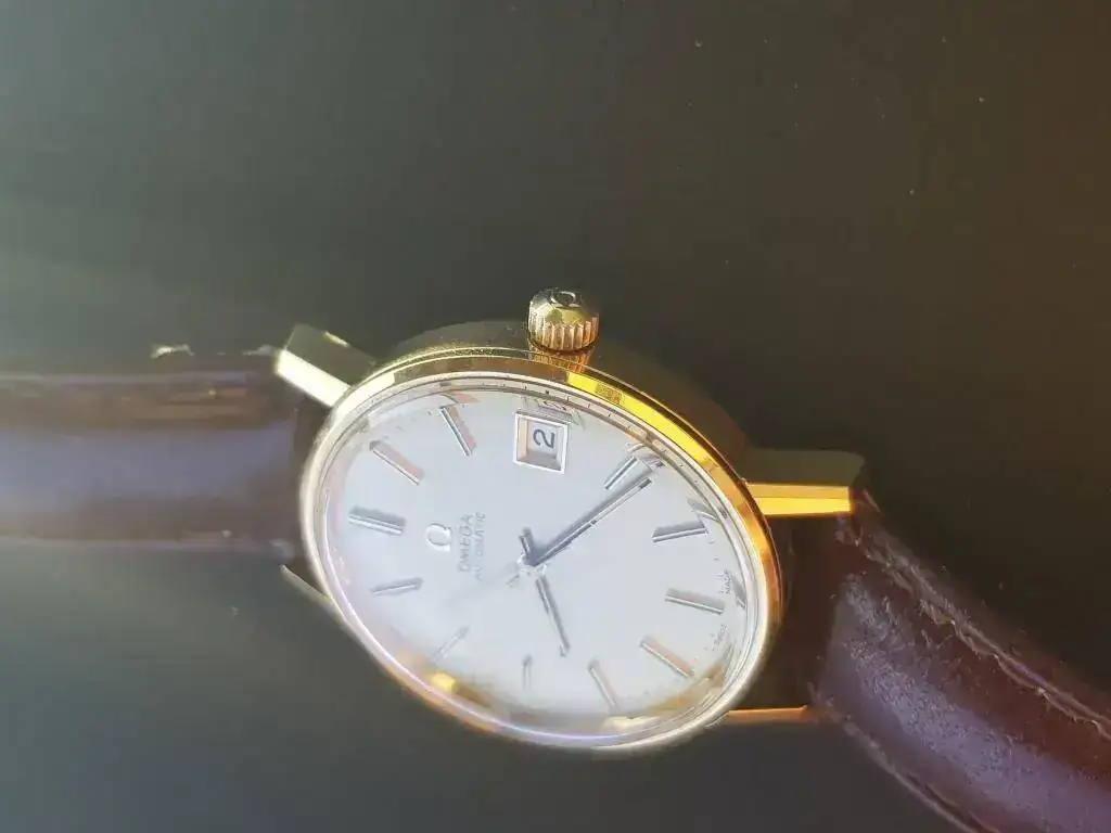 En esta ocasión se trata de un Omega automatic calibre 1012 en estado de casi NOS ya que lo he usado varias veces con mucho cuidado, el Diametro es de 36mm sin Corona pero parece mayor y queda muy bien, la caja es dorada y la esfera es dorada solo día.