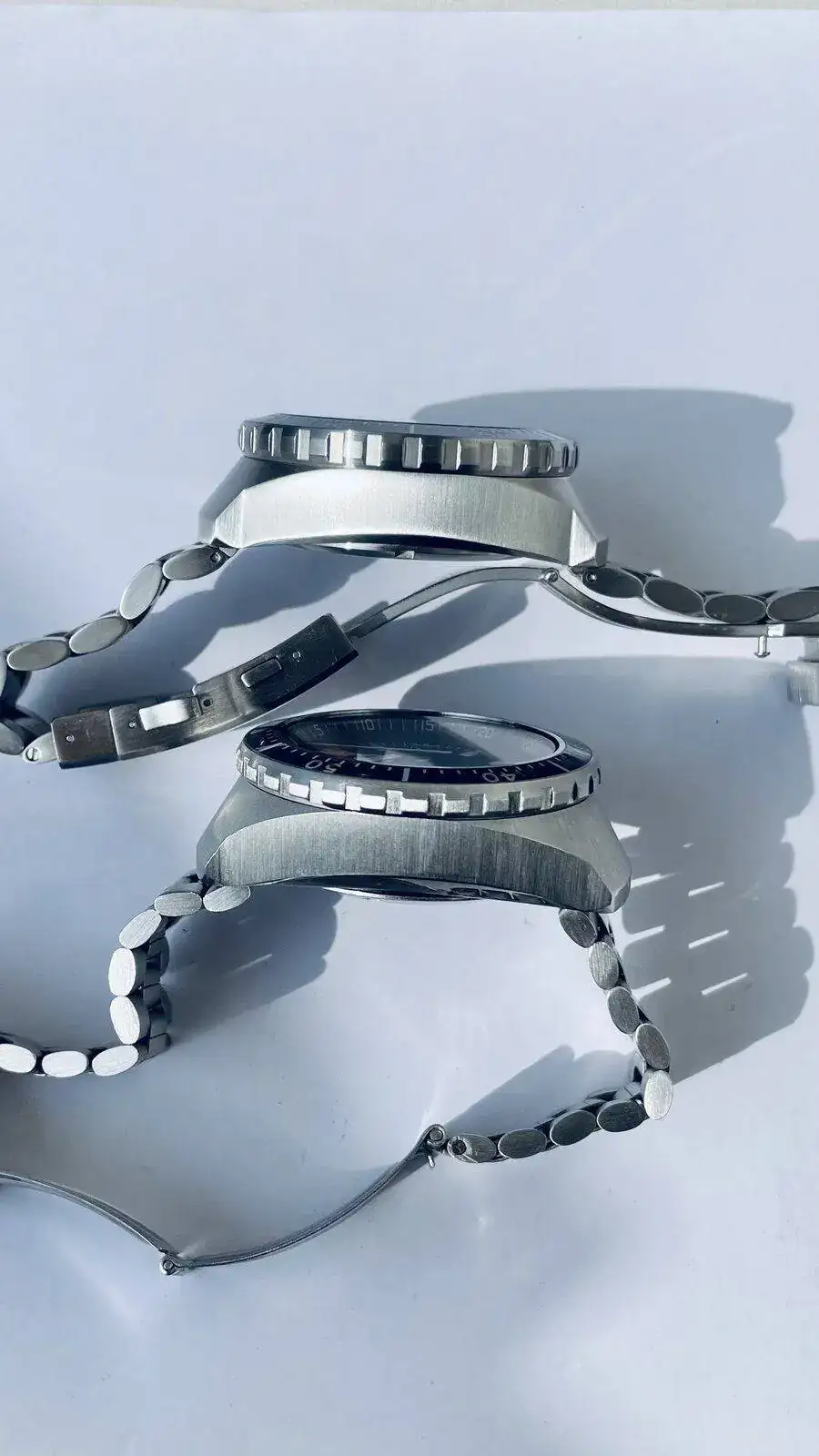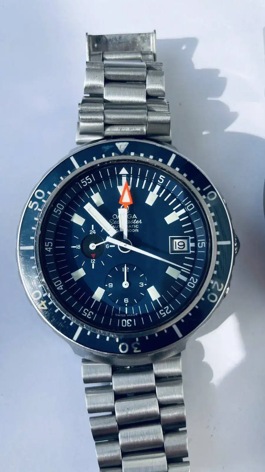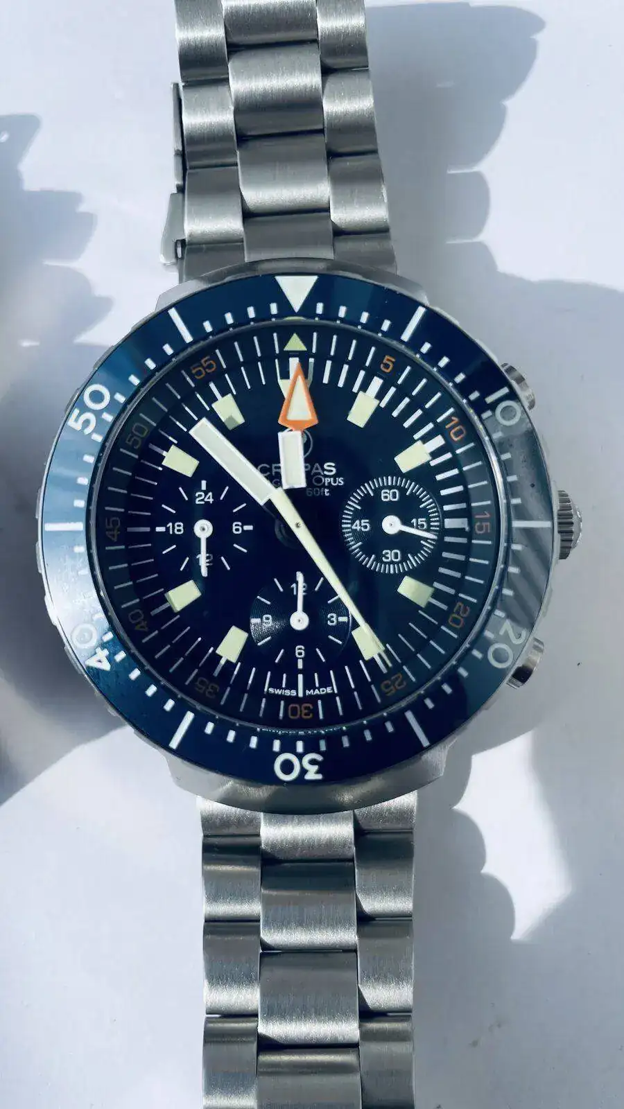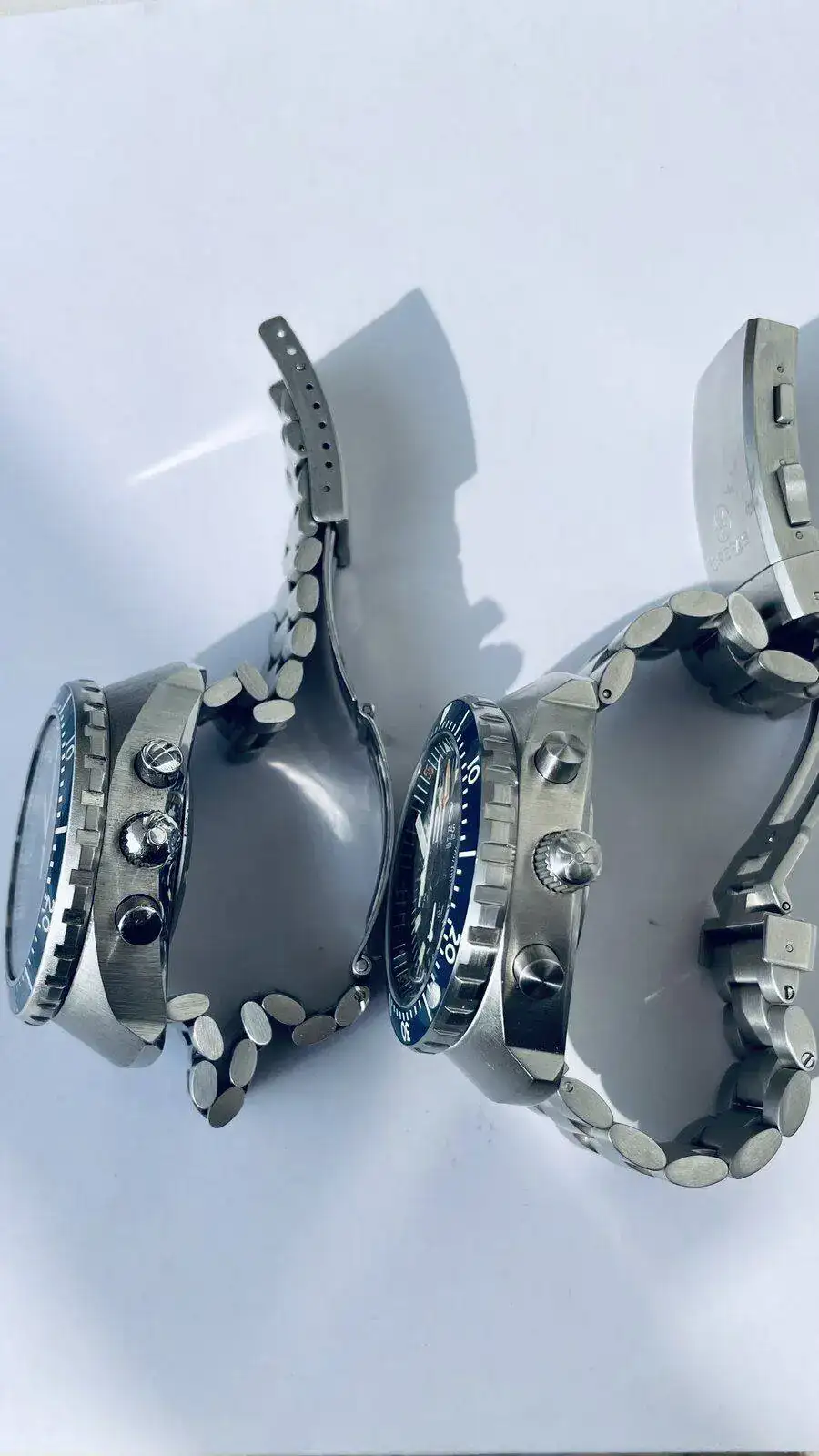 Comentaros que al Big Blue le he puesto dial y agujas nuevas , todavía hay stock en Omega, por supuesto todo lo original guardado, deciros que el calibre del Crepas aunque cuando llegaron tuvieron un problemilla de reseteo que a Crepas lo arreglo rápidamente , era una tontería , los pulsadores son realmente agradables al tacto y mantiene una marcha espectacular, a mi entender el Crepas da la impresión de ser más grande y pesa bastante más , pero ambos son una verdadera preciosidad , estoy más que encantado con ellos.