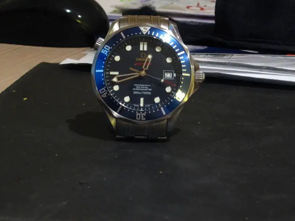 saco a la venta este muy precioso y muy buscado Omega Seamaster Bond Automático Coaxial. El estado es de uso pero muy bueno, sin holguras del armis, rozadurillas en el cierre, e impactos poco apreciables a simple vista. De marcha muy bien, y con estanqueidad. Va completo de documentación. Decir que es el más buscado por ser un reloj muy equilibrado de medidas, y la esfera de olas le da un punto diferente a todo lo existente. Los índices son rodiados y el fondo lleva grabado el caballito. Decir que no salen muchos en el mercado y es un reloj polivalente, tanto por deportivo, como para vestir. Sin mas, decir que el precio son 1800€ sin cambios por favor. Si alguien necesita más fotos, me pasa por privado su número de whatsapp y se las mando en un periquete. Saludos y espero que os guste.