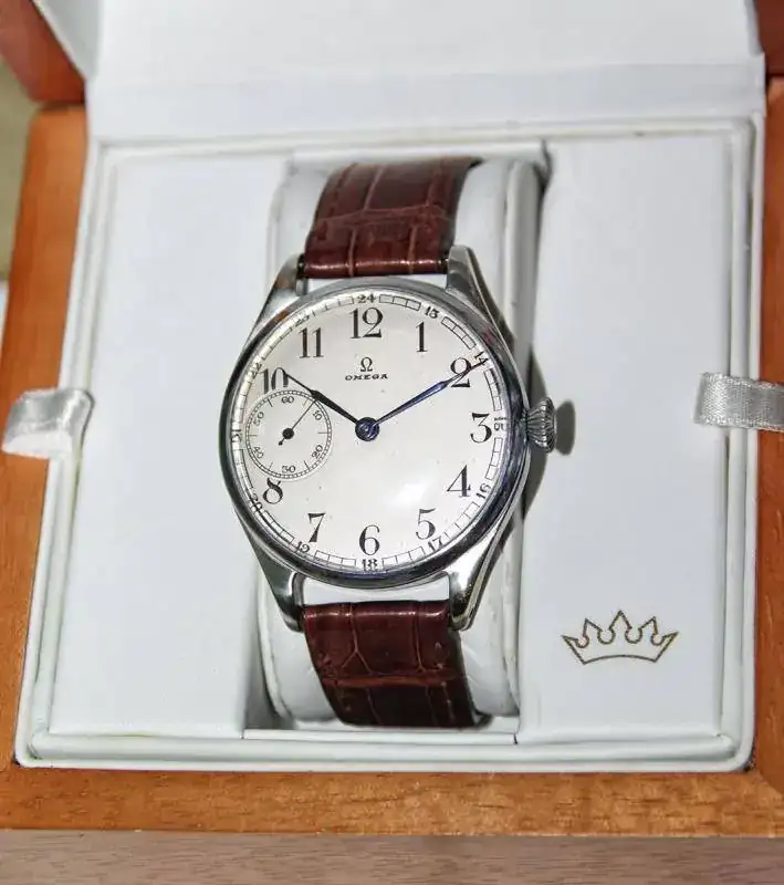 Saco a la venta esta pieza única. Se trata de un reloj de bolsillo hecho pulsera pero con la corona a las 3, la caja tiene en las asas algo de patina y el plexo algunas pequeñas marcas lo que le dan un aspecto de época único.