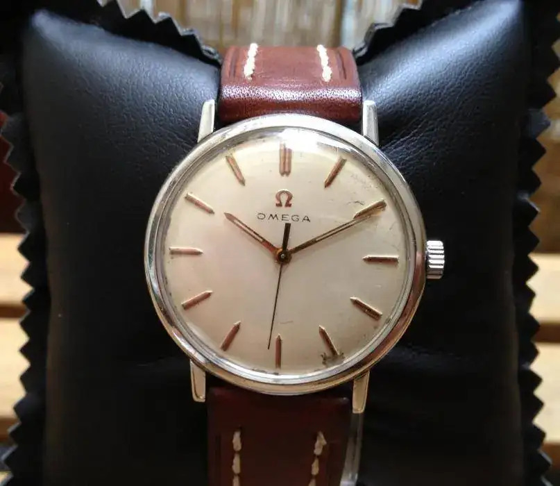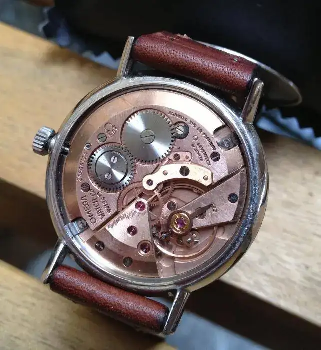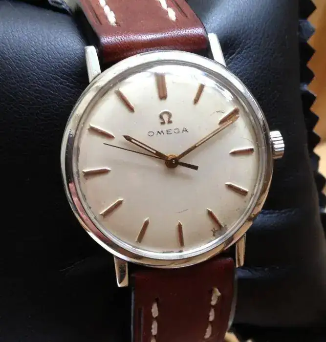 pues un reloj que me ha llegado como parte de un cambio que tiene que salir por necesidad de €€€€. Pues se trata de un bonito Omega de carga manual con calibre 601 que se encuentra en buen estado general. El precio es debido a que necesita una revisión y es que hay dos pequeños problemas. Uno es que el segundero no tiene un barrido continuo, y a pesar de que mantiene bastante bien la hora creo que es algo que debe arreglarse. El otro problema es que cuando se le da cuerda, hace un ruido un poco extraño. Por lo demás la caja y demás está en buen estado. Lo acompaño con una correa Hischt marrón muy ancha y nueva que le va bastante bien.