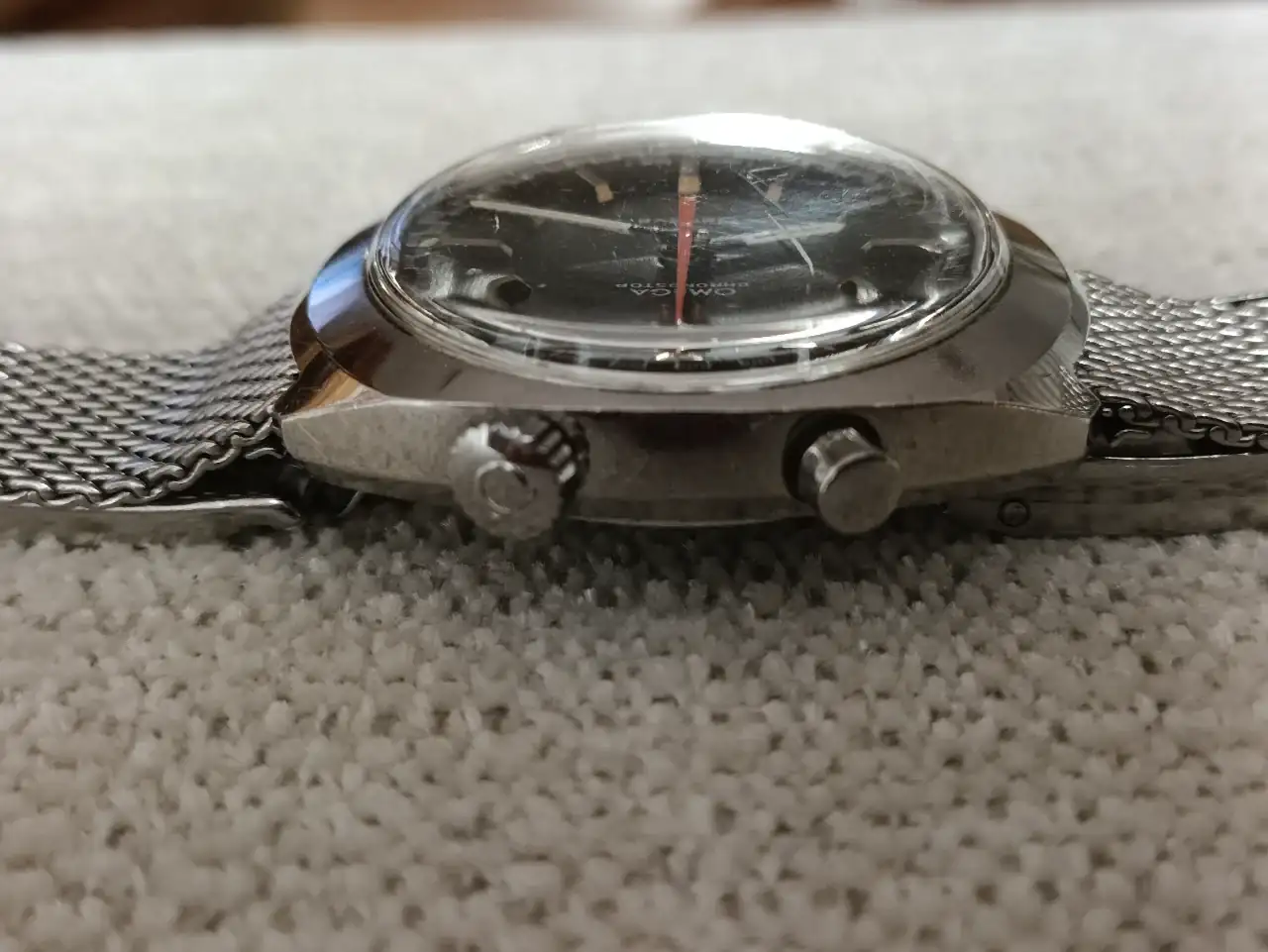 El cristal original con el símbolo de Omega que he sido incapaz de sacar en las fotos pero que ahí está, tiene un pequeño arañazo que no molesta en absoluto.