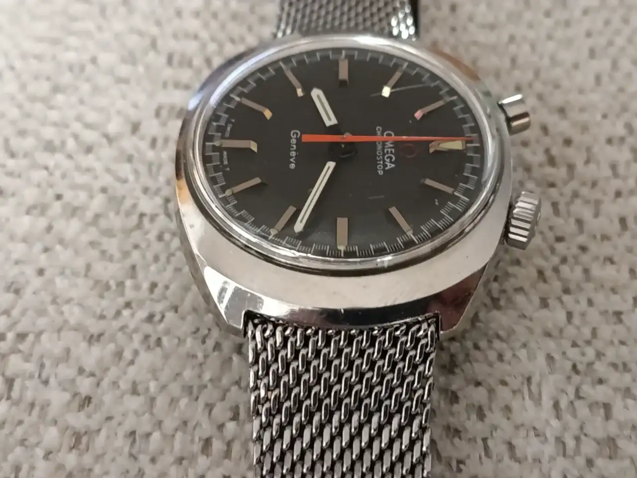 Vendo este bonito y raro, por la posición de su esfera, reloj Omega Chronostop Driver Dial de 35 mm de diámetro sin contar la corona, funciona de maravilla, el crono que para a la vez que resetea también va perfecto, calibre manual 865, no lo he abierto nunca, soy su segundo propietario, la persona que me lo vendió fue su único propietario.