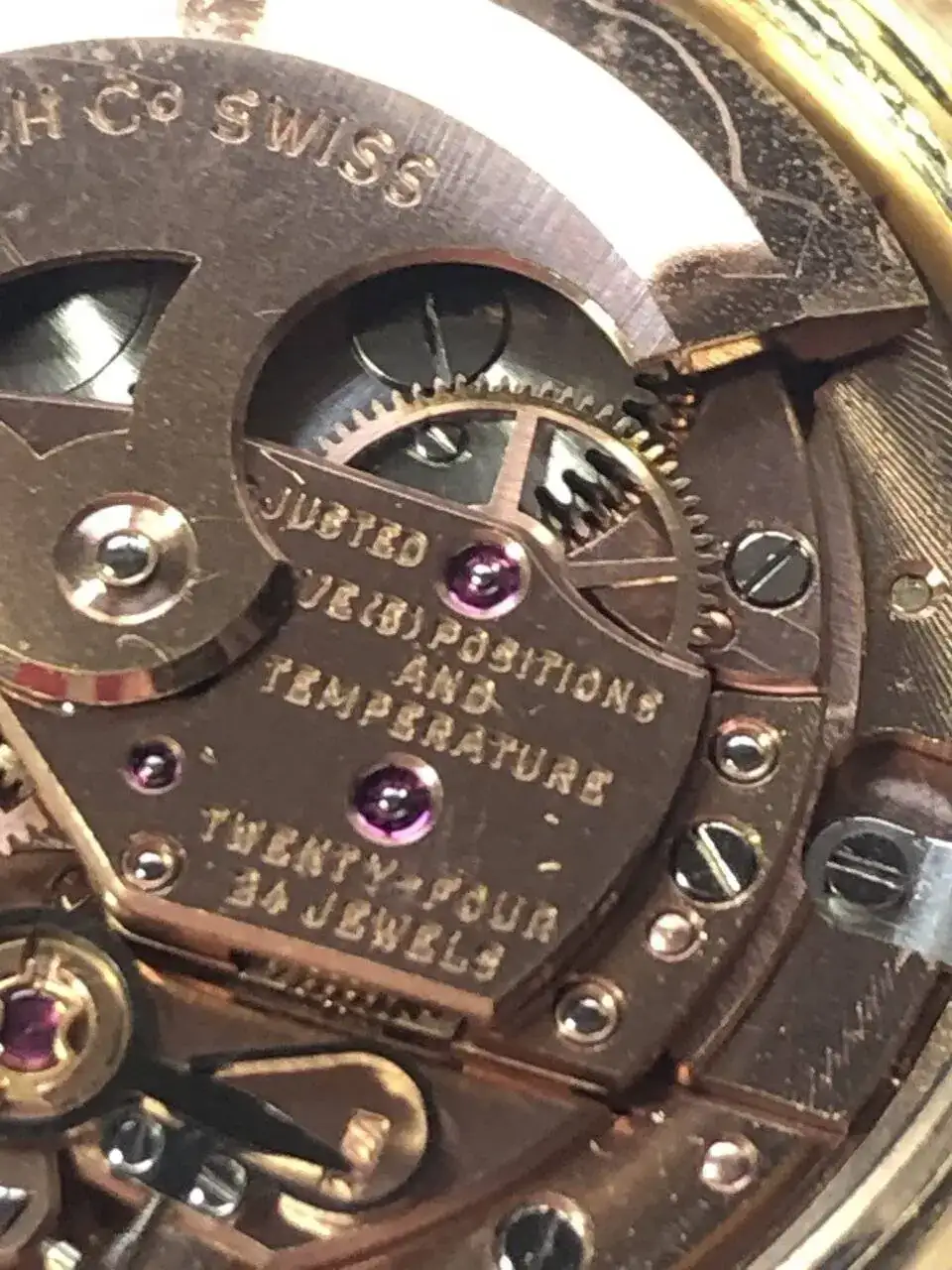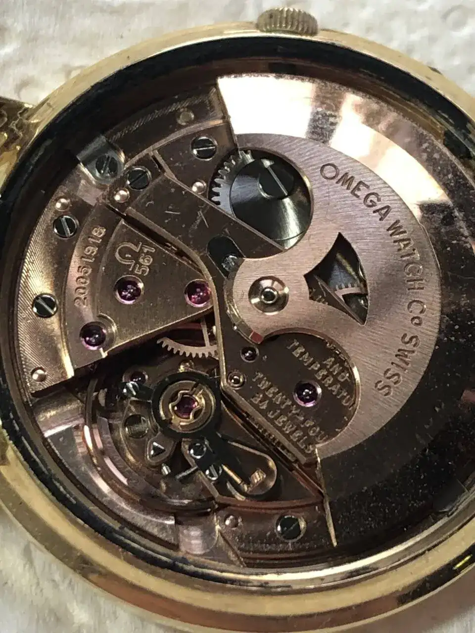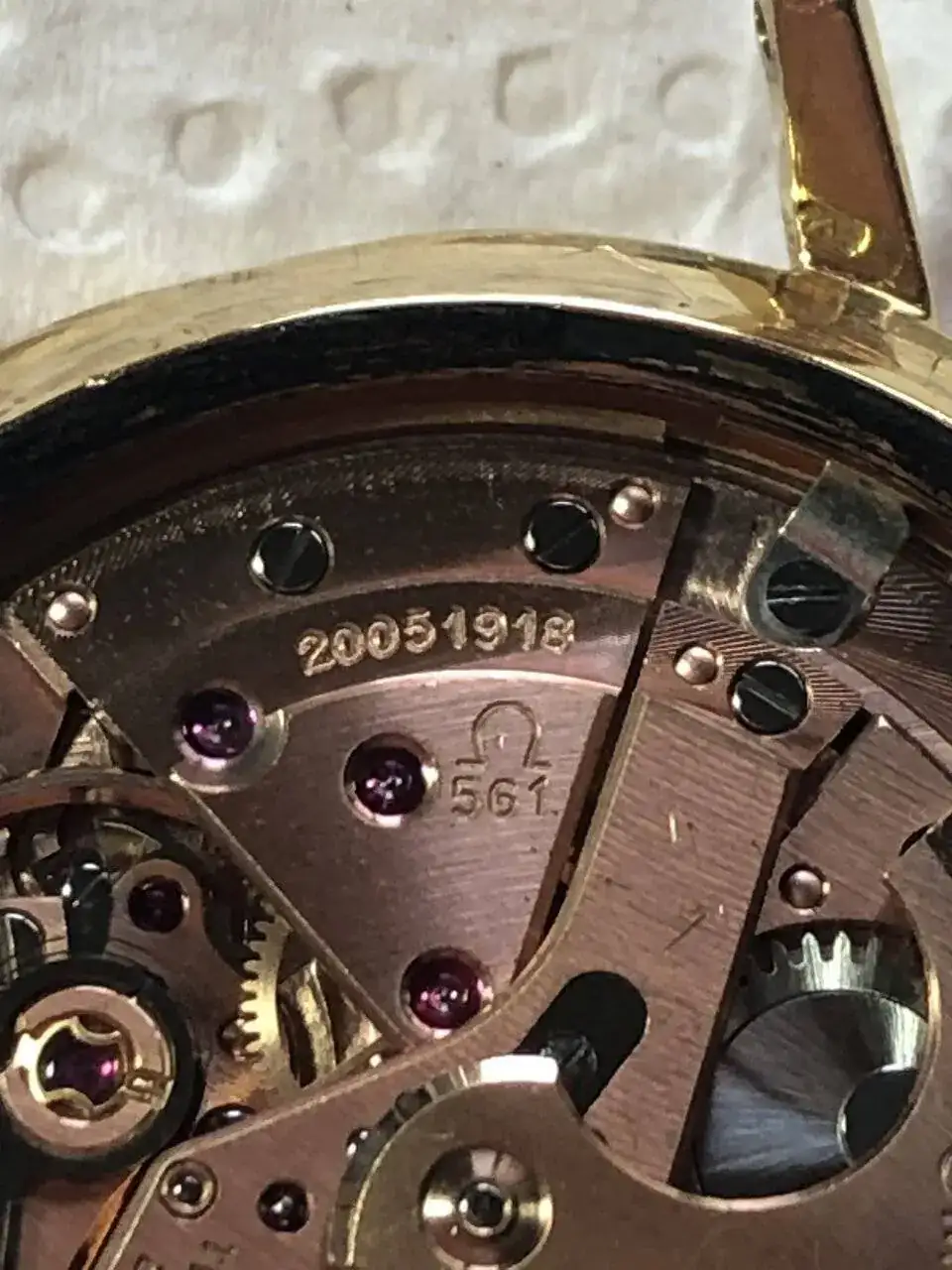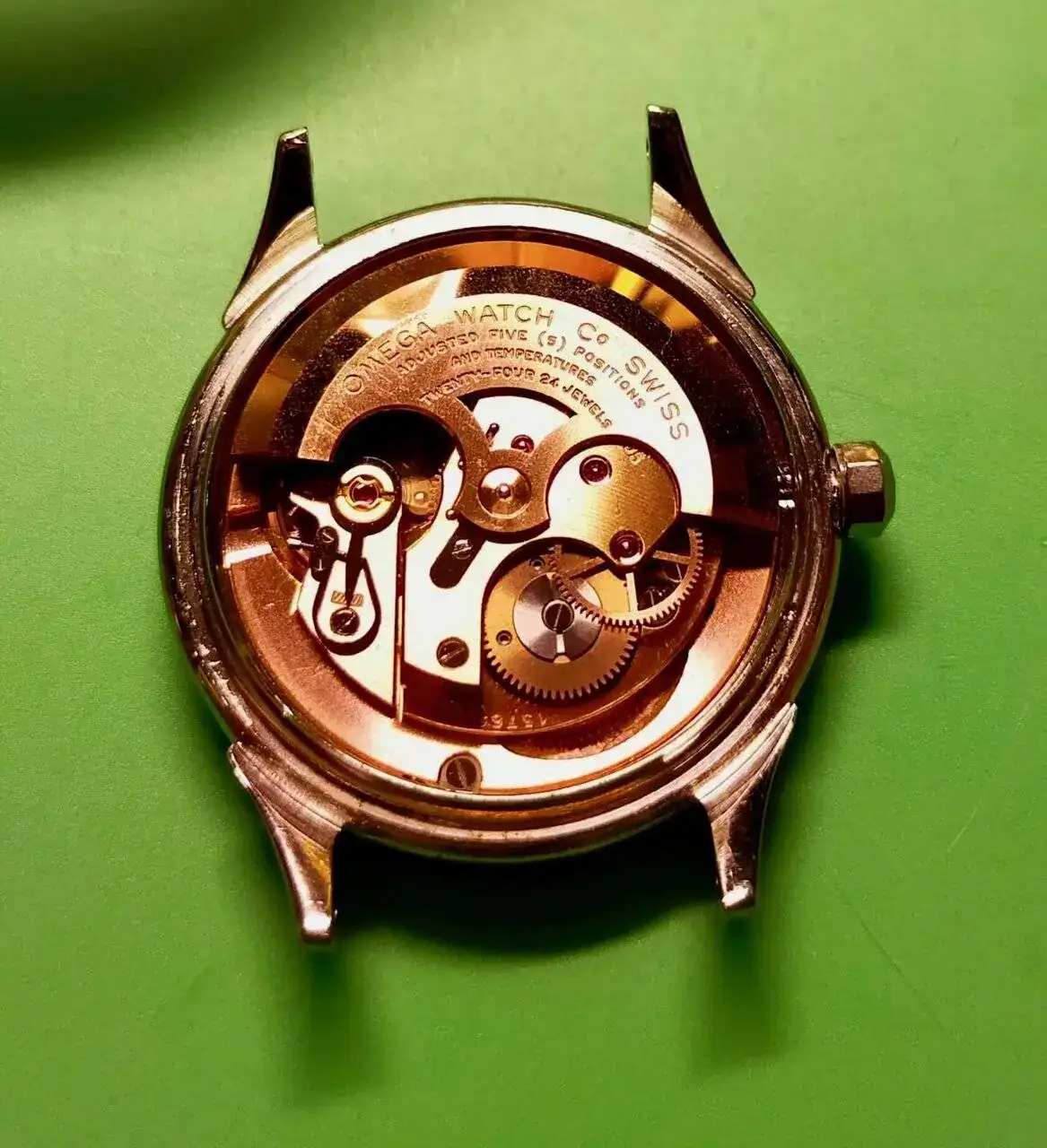 Como se puede ver en la foto, la masa oscilante lleva grabado el texto “Omega Watch Co Swiss” / “Adjusted five (5) positions” / “and temperaturas” / “twenty-four 24 jewels” Asimismo, en los puentes se puede ver grabada la referencia del calibre, “505”, junto al logo de Omega, y el número de serie.