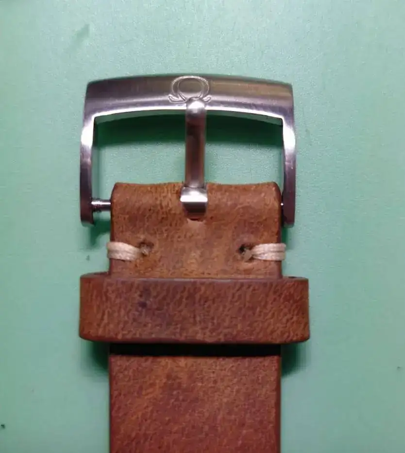 El reloj venía con esta hebilla, que no sé si es original ni si se corresponde con la de este modelo. Quizá algún compañero me podáis dar algo de luz al respecto. Como se puede ver en la foto, al cambiarle la correa no tuve en cuenta el ancho del extremo de la hebilla y queda con una cierta holgura.