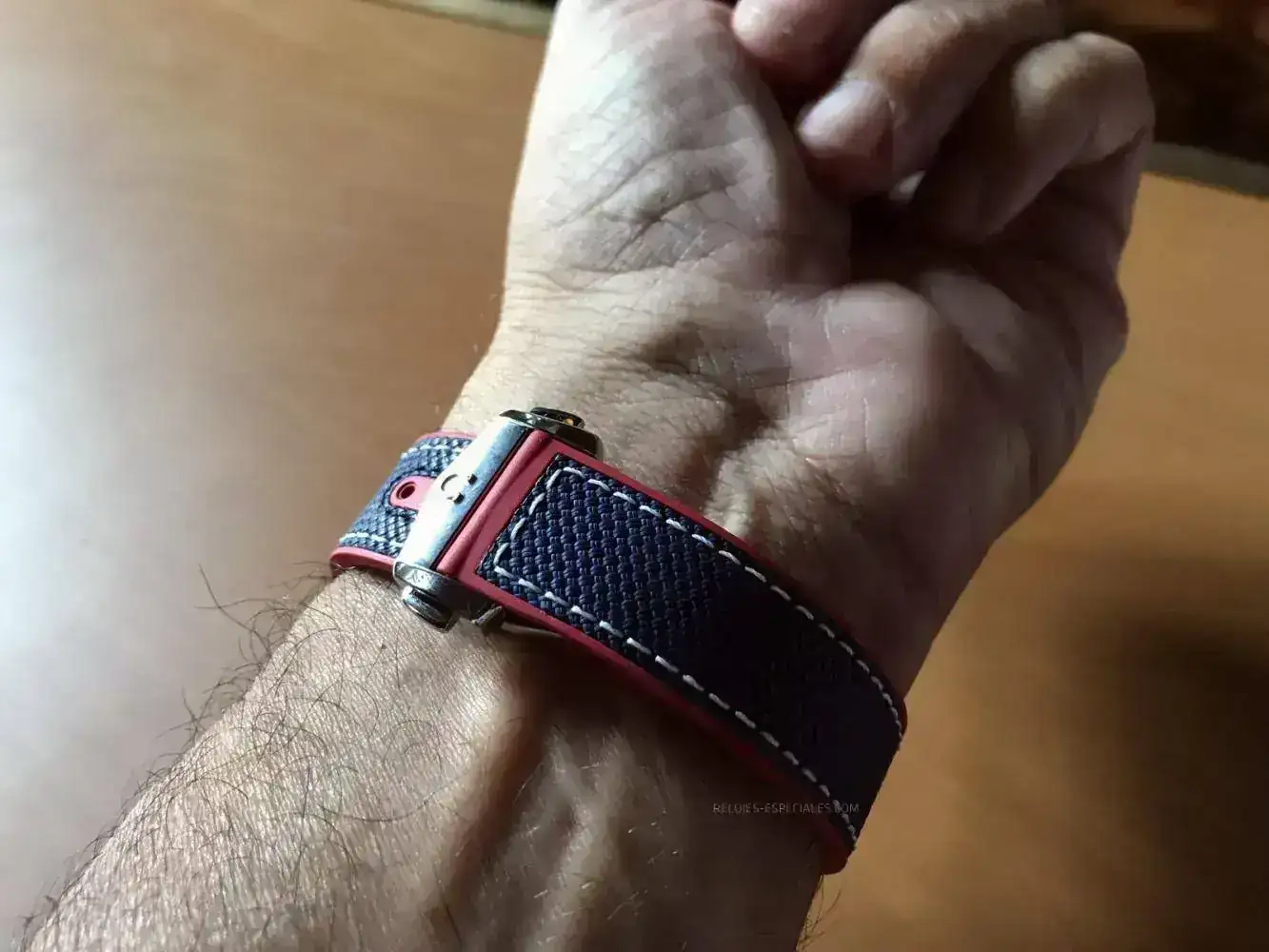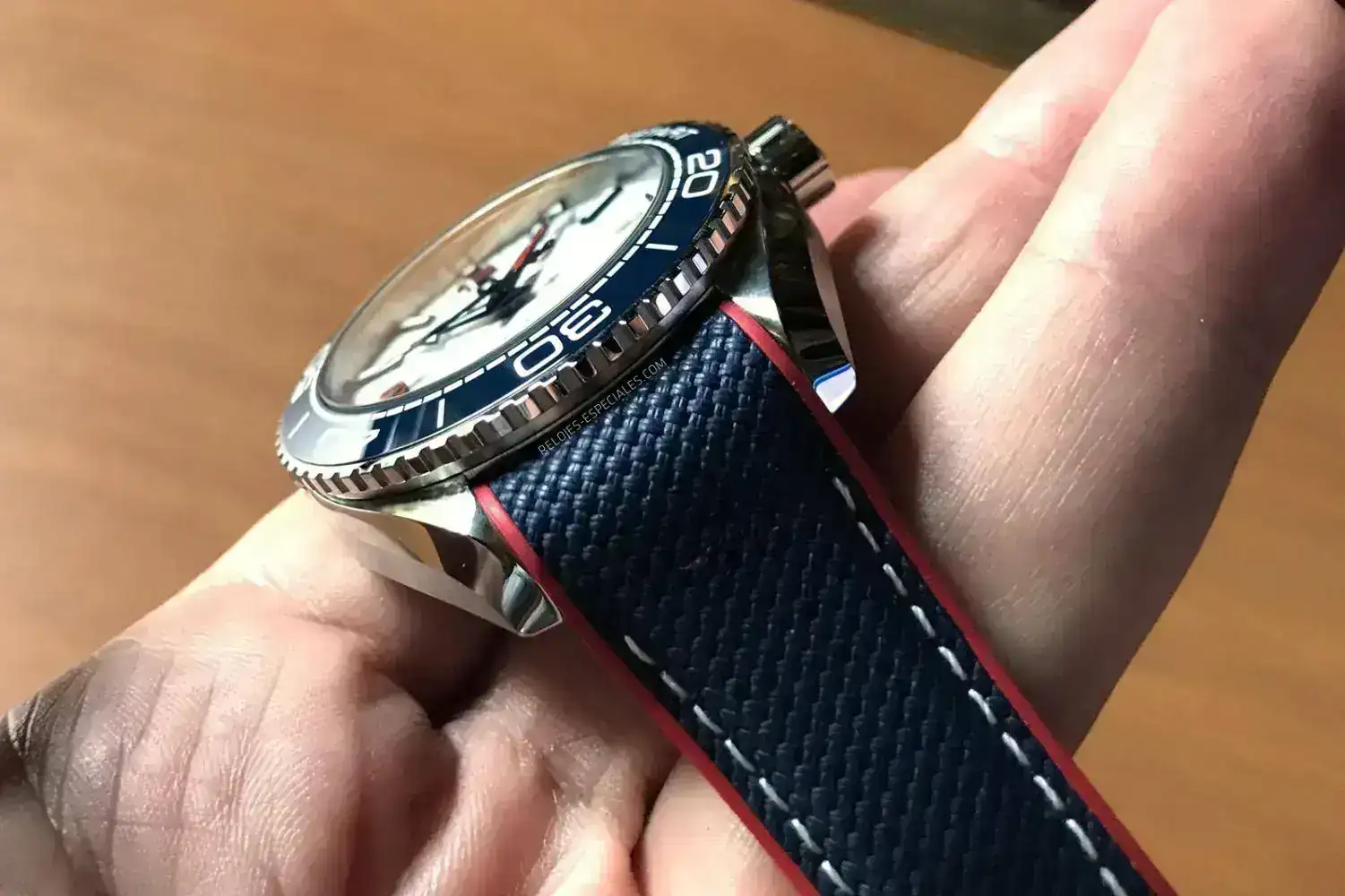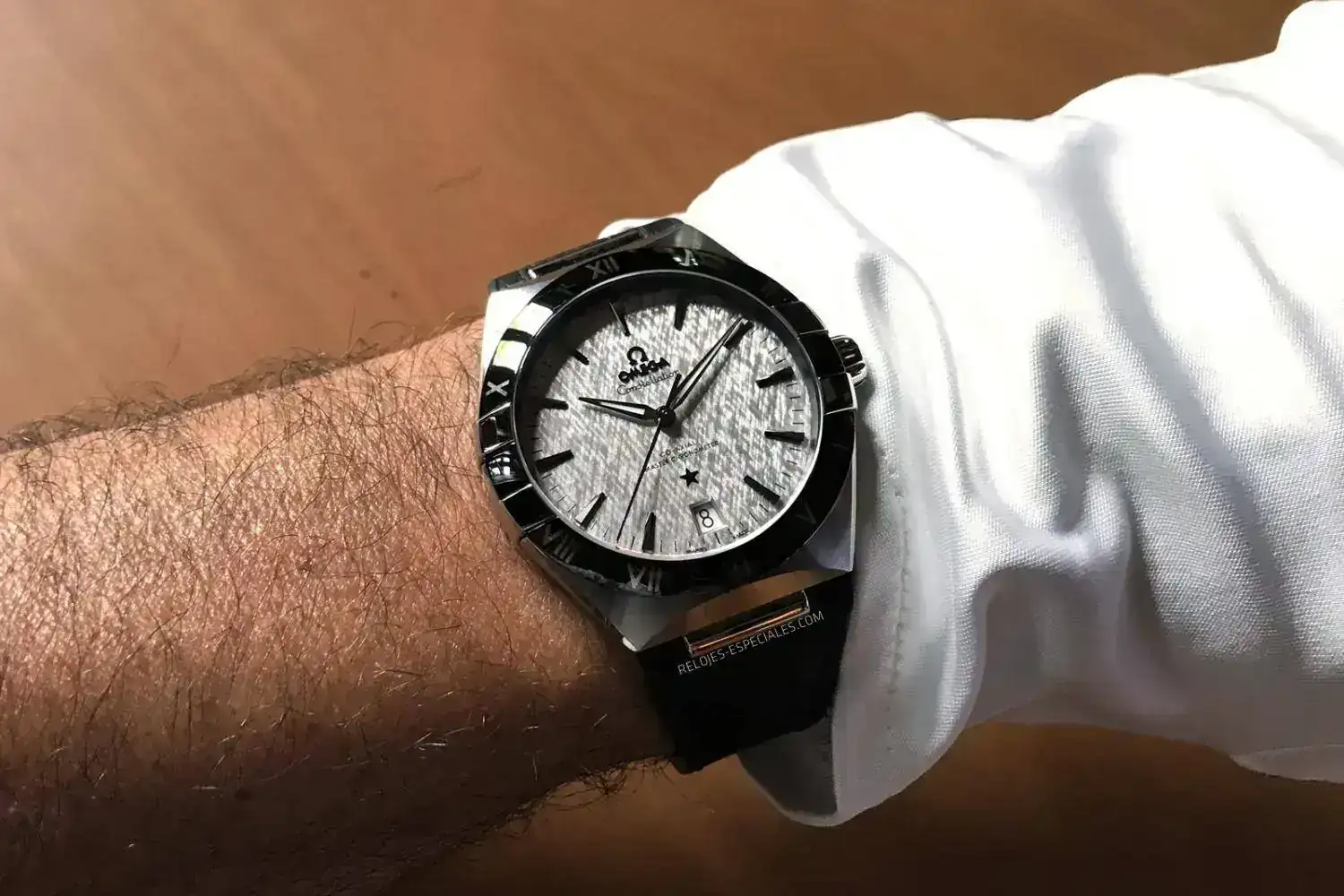 La mayoría de los nuevos modelos Omega Constellation de 2020 se presentará con brazaletes de piel forrados en su interior con caucho antibacteriano. Cada lado o componente de esta correa se une a la caja mediante un eslabón metálico, lo que contribuye aún más a la vinculación con su antecesor, pero se puede combinar sin problemas con brazaletes metálicos (acero, oro o mixto).