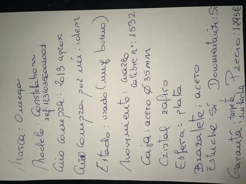 Vendo espléndido omega constellation acero esfera plata calibre de cuarzo, modelo actual, en muy buen estado de un uso cuidadoso con sus pelillos/marquitas que un ligero repaso dejarían impecable. Es una reloj similar en muñeca al Rolex datejust al cual sustituye en muñeca y de ahí su salida, ideal para caballero o para mujeres que gusten de relojes de tamaño generoso.