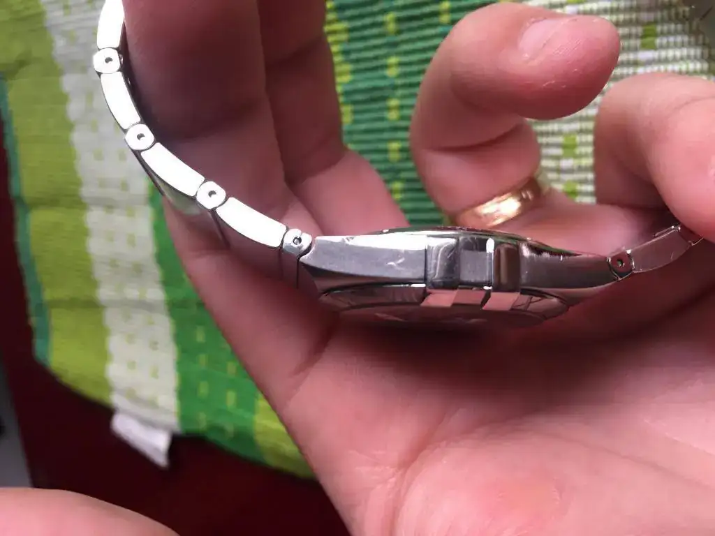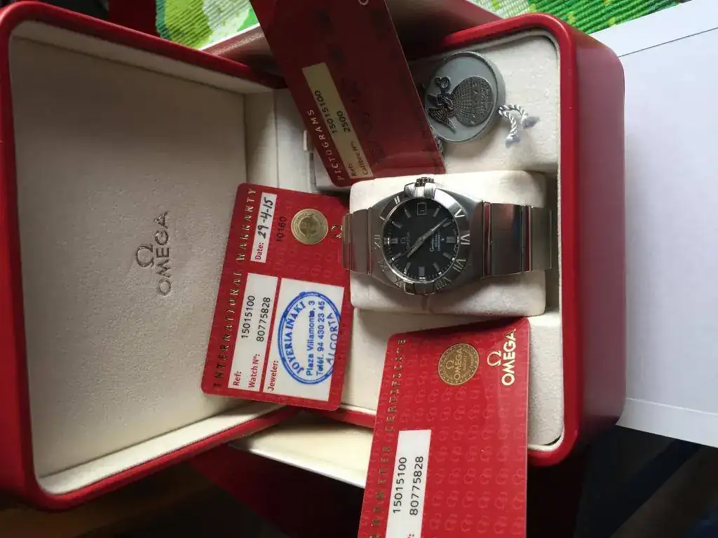 Buenos días,saco para cambio este Omega Constellation double eagle de caballero,el estado del reloj es usado(microarañazos en carrura y brazalete)lo más destacable es un cepillado en los laterales de la caja muy mal hecho si lo miras detenidamente(puesto no se aprecia)se conoce que su anterior dueño tendría alguna inscripción o marca en esos laterales y decidió borrarla(con resultados no demasiado satisfactorios)su cepillado original lo puede recuperar fácilmente y por poco dinero cualquier profesional del pulido.Dicho esto,el reloj se envía con brazalete ajustado para mí muñeca(18cm)y con sus eslabones sobrantes,toda su dotación de fábrica(caja blanca exterior,caja roja interior,tarjeta de garantía sellada y fechada y las dos tarjetas de pictogramas)bueno,para cambios busco un diver automático,en similar estado al mío y que no sea mayor de 42mm(no puedo con relojes más grandes)un cordial saludo y gracias al foro por ceder el espacio.