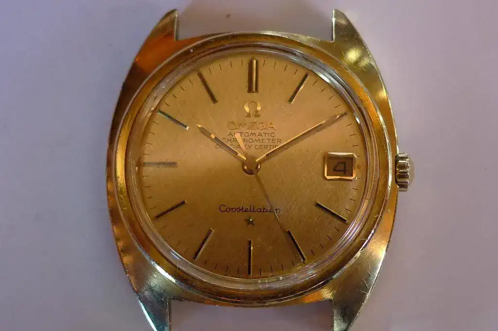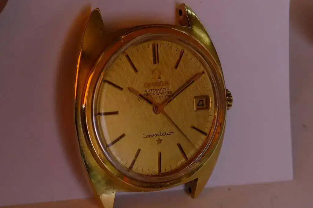 Por cambio de vestuario, pongo en venta, uno de los relojes que nunca pensaba que iba a salir de mi colección, se trata de un Omega Constellation de Oro de 18kl. fabricado en 1968 y con el calibre 564 con cambio rápido de fecha. Numero de caja 168.009. Decir de este modelo que la esfera es de oro, lo que lo hace dentro de la gama los mas caros y buscados.