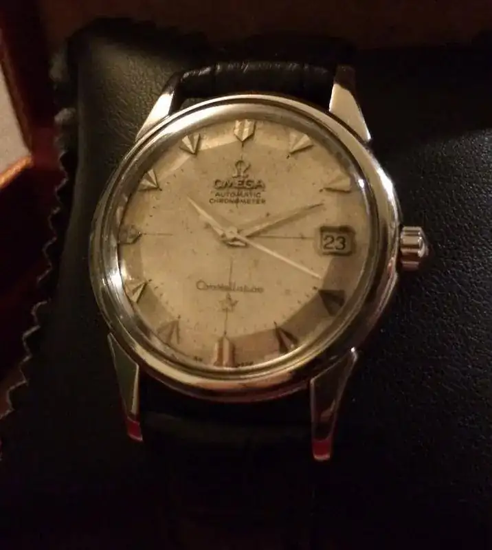 El plexi es NOS con la marca omega en el centro y la caja de acero esta en muy buen estado. La esfera pie pan es totalmente original con una pátina que a mi me tiene enamorado. Corona original Omega NOS