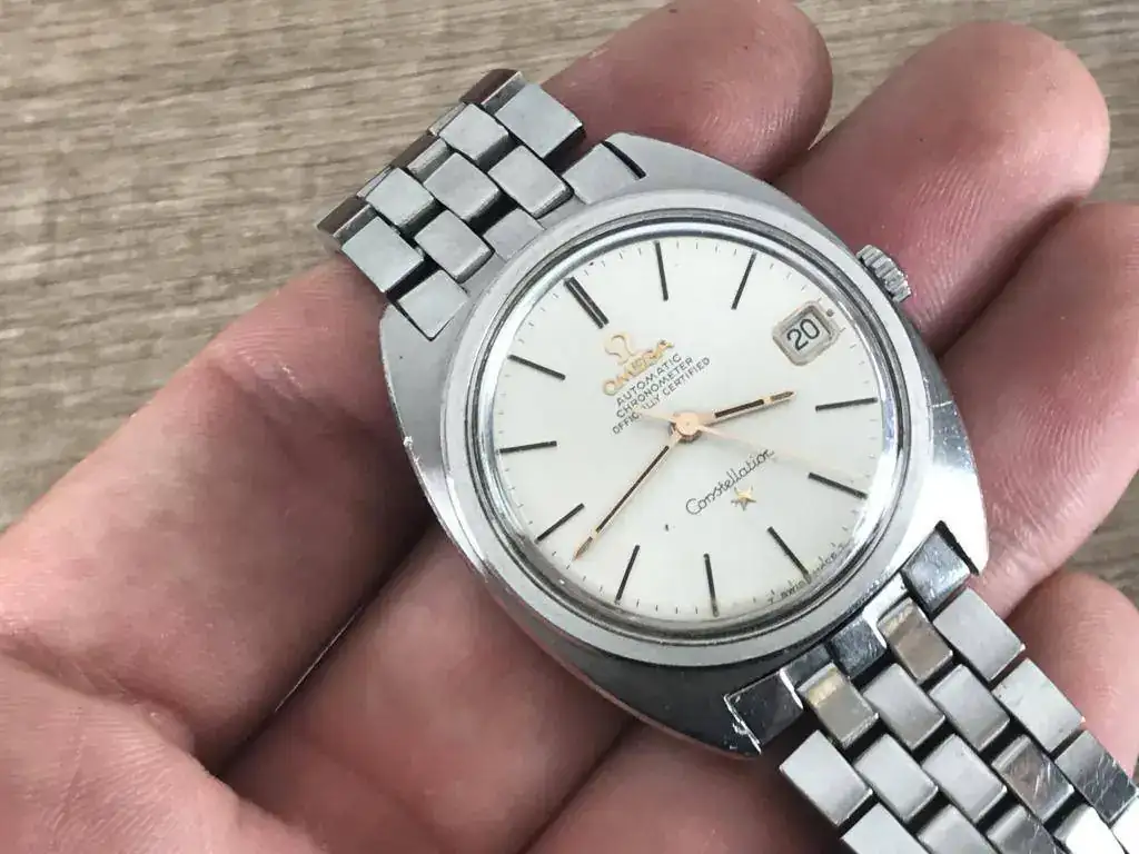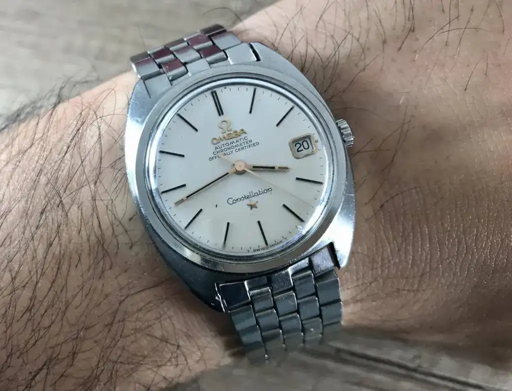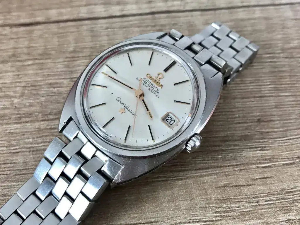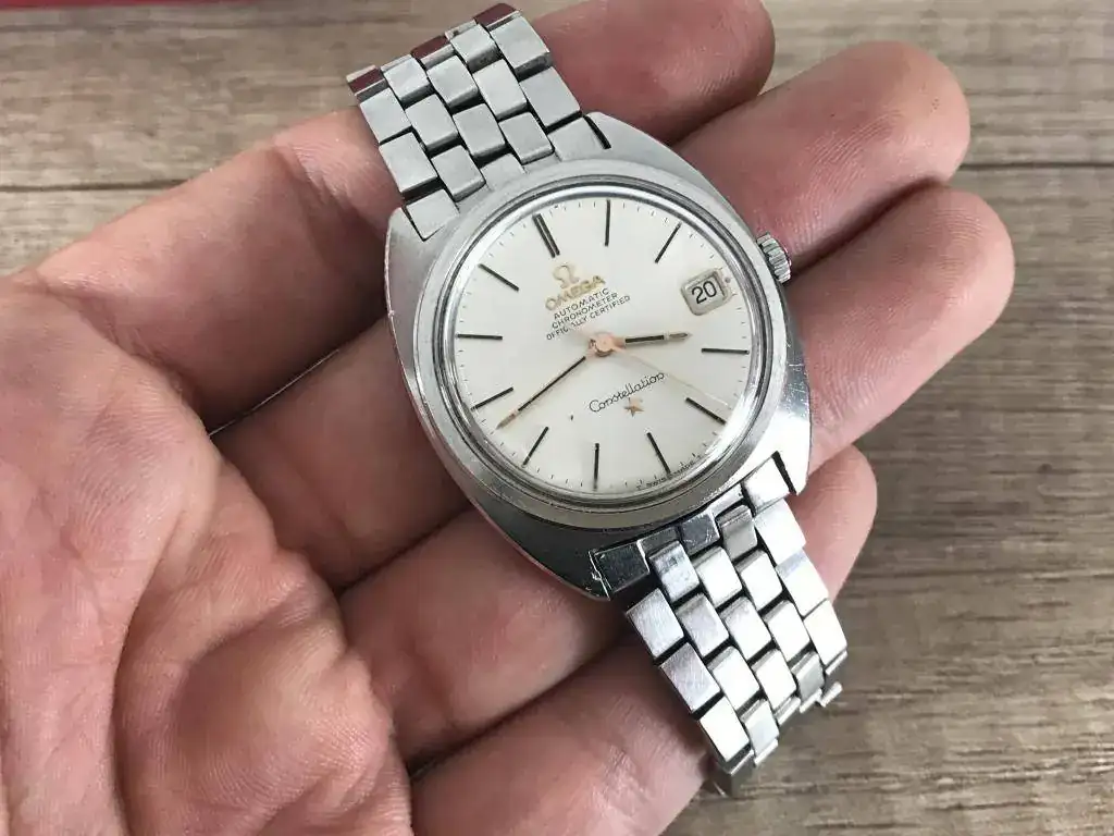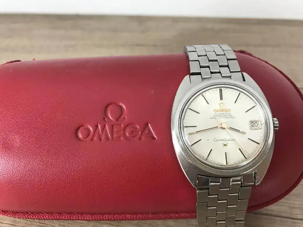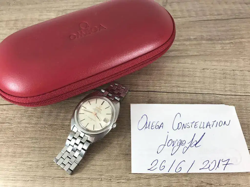 saco a la venta uno de mis relojes y de mis omegas mas preciados, tienen que salir unos para que puedan entrar otros y por mucho que me cueste, tiene que salir este. Se trata de un Omega Constellation con su mítica caja, ademas este lleva unos bonitos indices dorados a juego con las agujas. Conserva su brazalete y su corona original y lo envío con un estuche de viaje Omega.