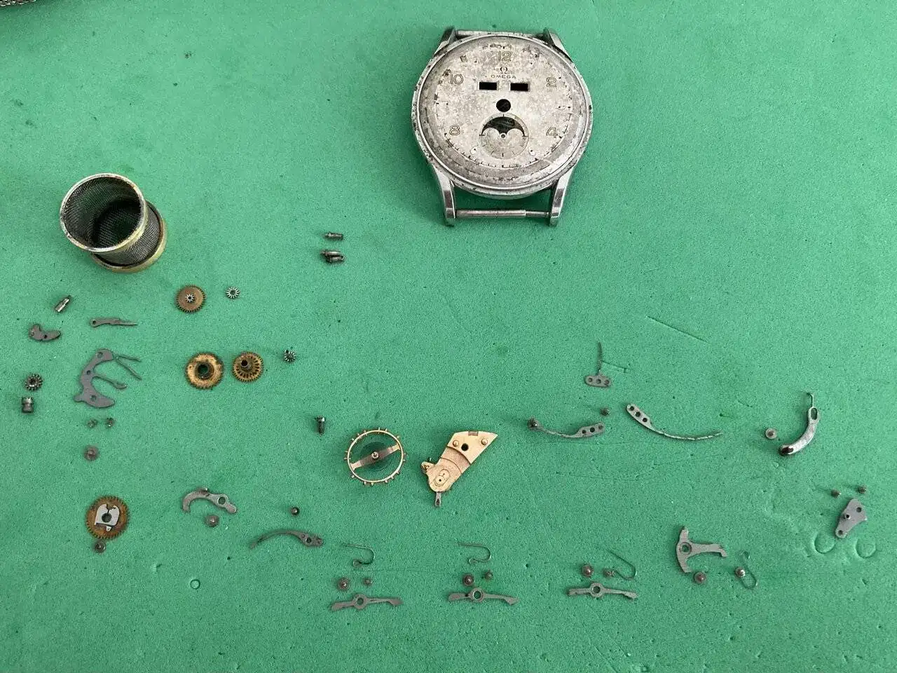 Le faltaba la corona, bisel, aguja minutara y el pitón del volante.