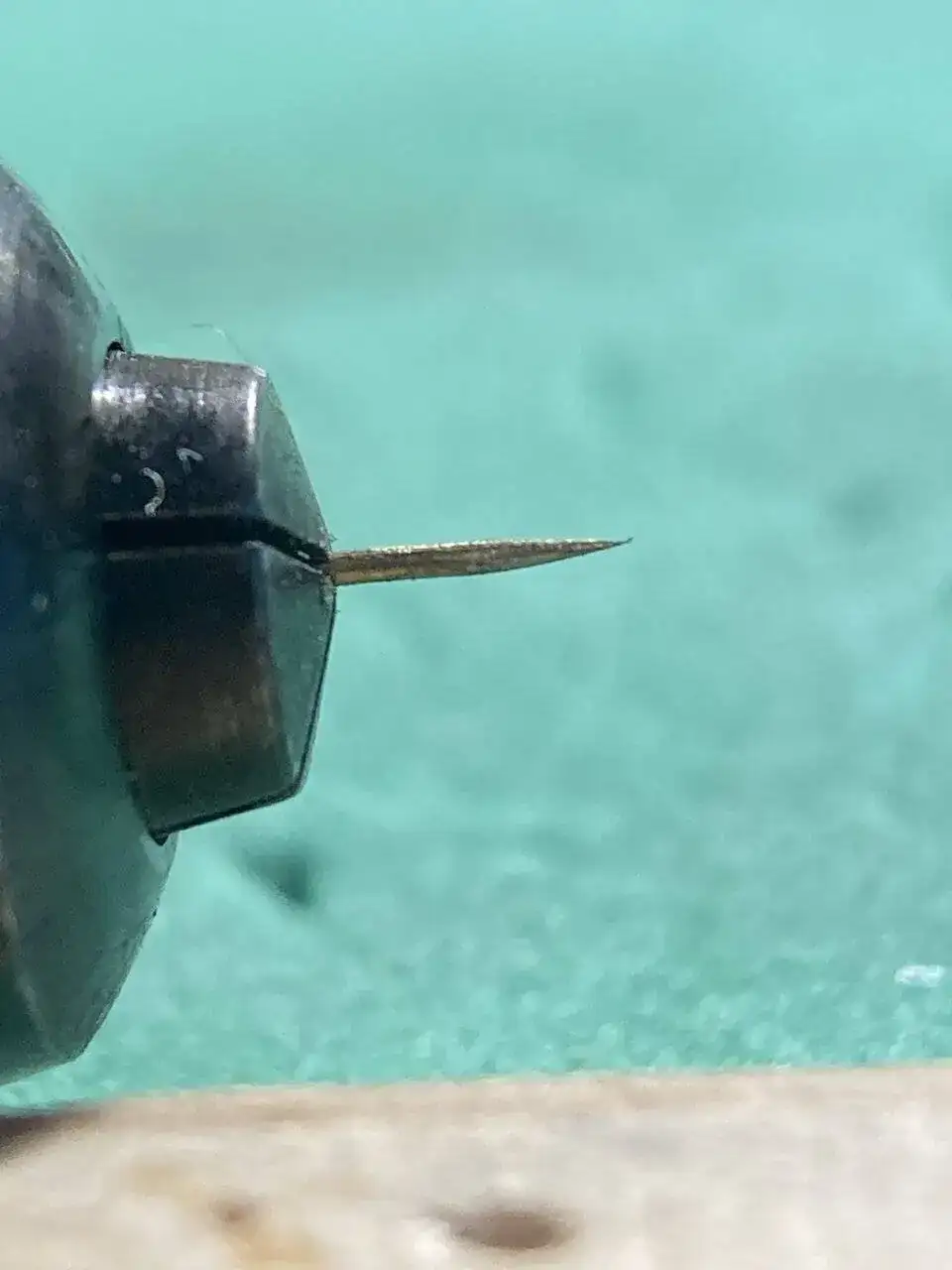La aguja minutera que faltaba, fue cuestión de seleccionar una similar a la original y dejarla a la distancia apropiada. Con la botadora estreché algo y ajustó bien.