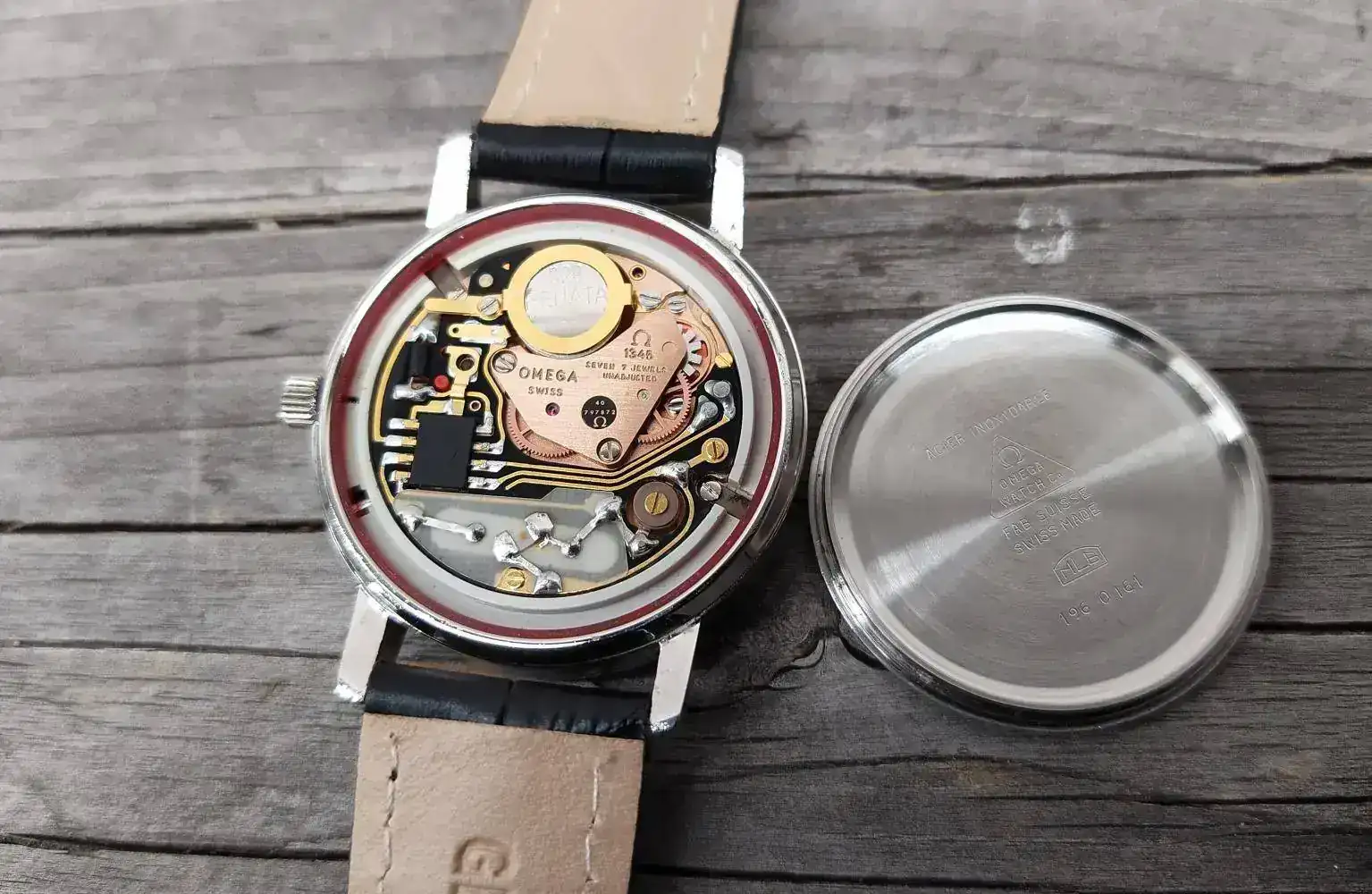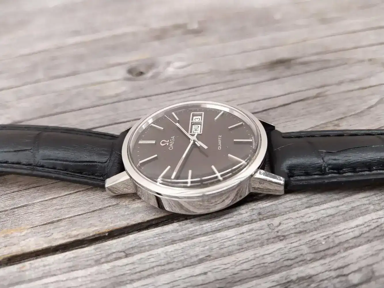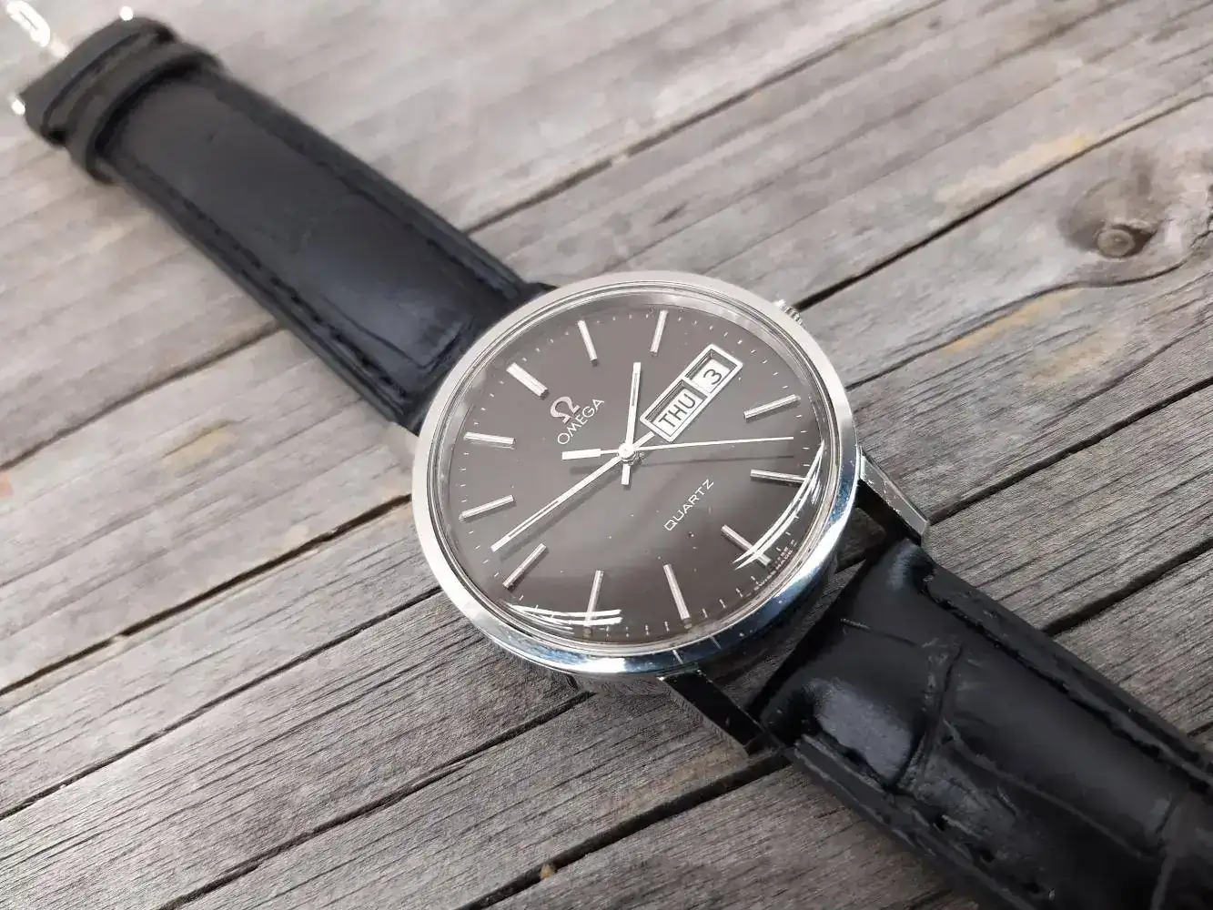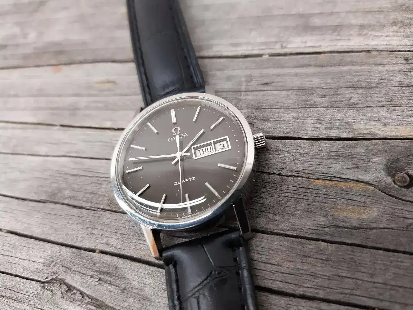 (Cosas del calibre 1345 de Omega), y es pequeño para mi.Los puntitos blancos que se aprecian en la esfera no son reflejos en el plexi (original Omega, por cierto, con su logo grabado en el centro), sino que están realmente en la esfera.