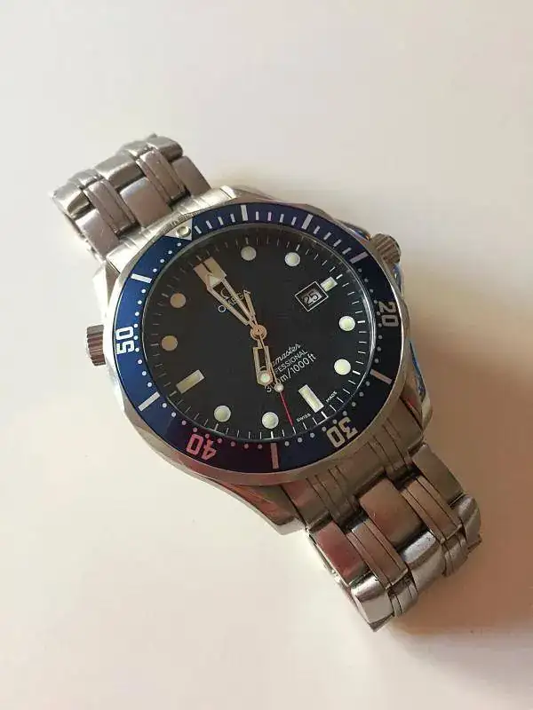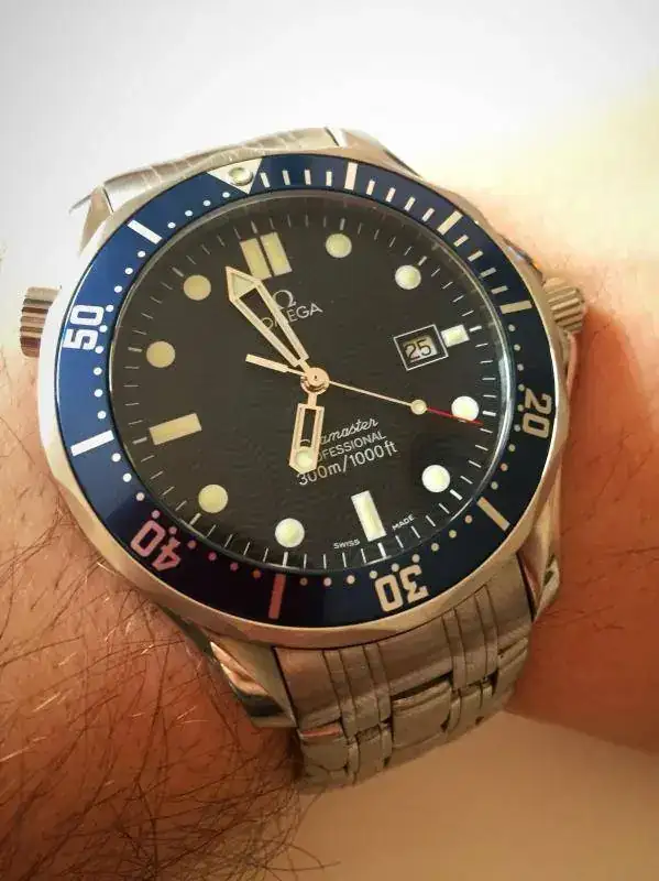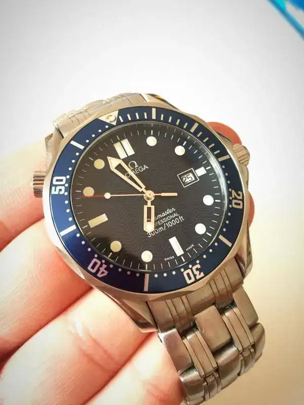 Pongo a la venta este Omega Seamaster Bond de cuarzo, modelo de sobra conocido por todos. El reloj presenta el desgaste normal de los años, algo más acusado en el armis quizá que en la caja, que, salvo un arañazo en la tapa trasera realizado por algún "profesional" en algún cambio de pila, se encuentra especialmente bien. Mención especial merece el insert del bisel, se encuentra como nuevo, sin marcas, parece nuevo. La parte de acero del bisel si que tiene algún arañazo típico del uso. Las tonalidades de esfera, índices y agujas están también en muy buen estado.