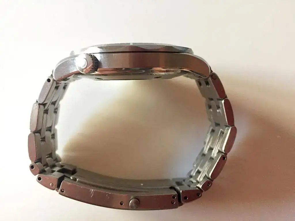 IMPORTANTE: El reloj solo vino con los eslabones que traía el armis montado, y que para mi muñeca (17cm) encajaba, aunque yo los relojes los suelo llevar más apretados de lo habitual. Yo creo que tal y como estaba serviría para muñecas de 16,5cm. El reloj no traía ningún eslabón más, pero pude hacerme recientemente con un eslabón adicional. En resumen, el brazalete tal y como está, creo que serviría para muñecas de hasta 17-17,5cm.