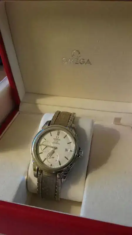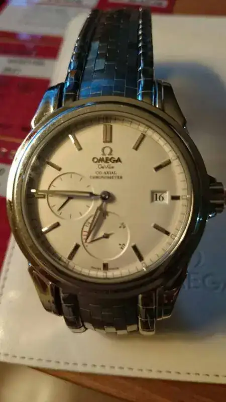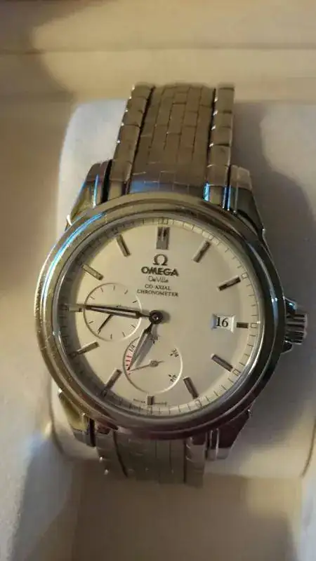 Vendo Omega De-Ville Co-Axial con Reserva de Marcha. Comprado en julio de 2006. El reloj se encuentra en buenas condiciones, con las típicas marcas de uso en el bisel y en el brazalete de acero. Nada que un pulido no pueda arreglar. El cristal de zafiro está perfecto.