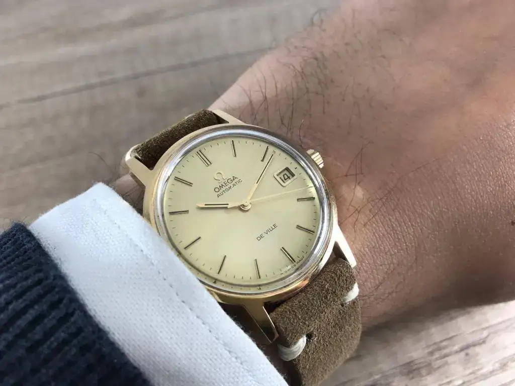 Saco a la venta este bonito Omega De Ville en un estado igual que nos, esta intacto y lo único a destacar será un pequeño picotazo en el plexi (original) a la altura de las 19. Como podeis observar en las fotos, esta en un estado de 10, sin marcas ni rayas, con el dorado intacto y hasta conservando parte de la pegatina de la tapa trasera.