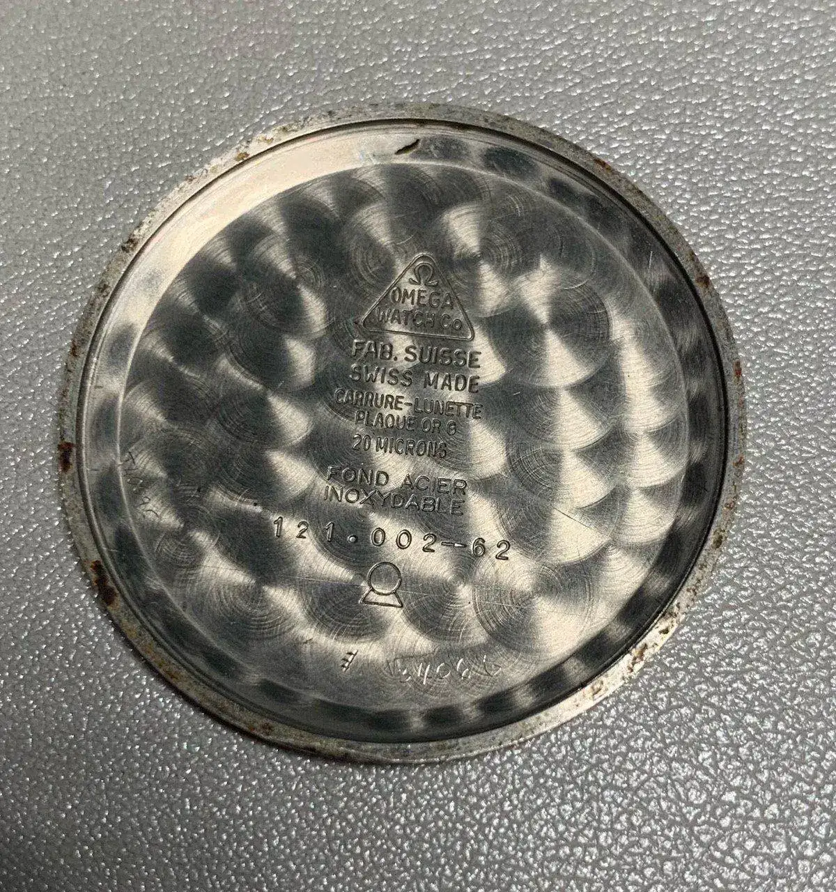 Ella (+80 años), llevó a su relojero de barrio - "el que me cambia las pilas"- el reloj para comprobar que estuviera bien y poner una correa nueva, antes de hacerme el regalo. Con todos mis respetos a los relojeros de "barrio", en concreto al que lo llevó resultó ser un auténtico inepto. Quitó el plexi, pero después no supo o no quiso ponerlo (hoy en día esta sin él) . Así mismo, no tengo fotos del antes, pero el dial tiene unas marcas que no me cuadran que sean por el paso del tiempo. El mismo le indicó que el Omega era muy viejo y no valía la pena hacer nada . (el mismo "profesional" que con otro reloj, le propuso cambiar un mecanismo mecánico vintage por uno a pilas y así resultar más cómodo... -sin palabras-)