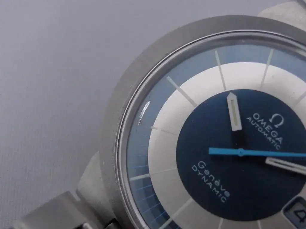 Hola compañeros, antes de salir de viaje de Semana Santa he decidido sacar uno de los relojes mas bonitos que creo que ha sacado Omega, Se trata de un omega Dynamic, con mecanismo automatico, el reloj esta practicamente nuevo, reseñar solamente una marca en la esfera sobre las 8 horas que la realizo por descuido mi relojero al llevarlo a repasar (os pongo una foto del detalle).