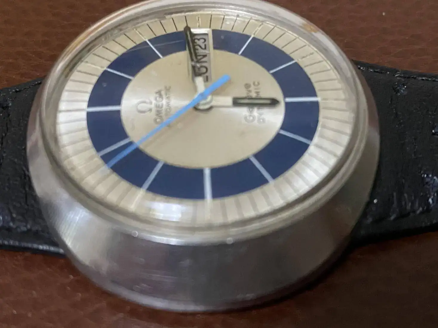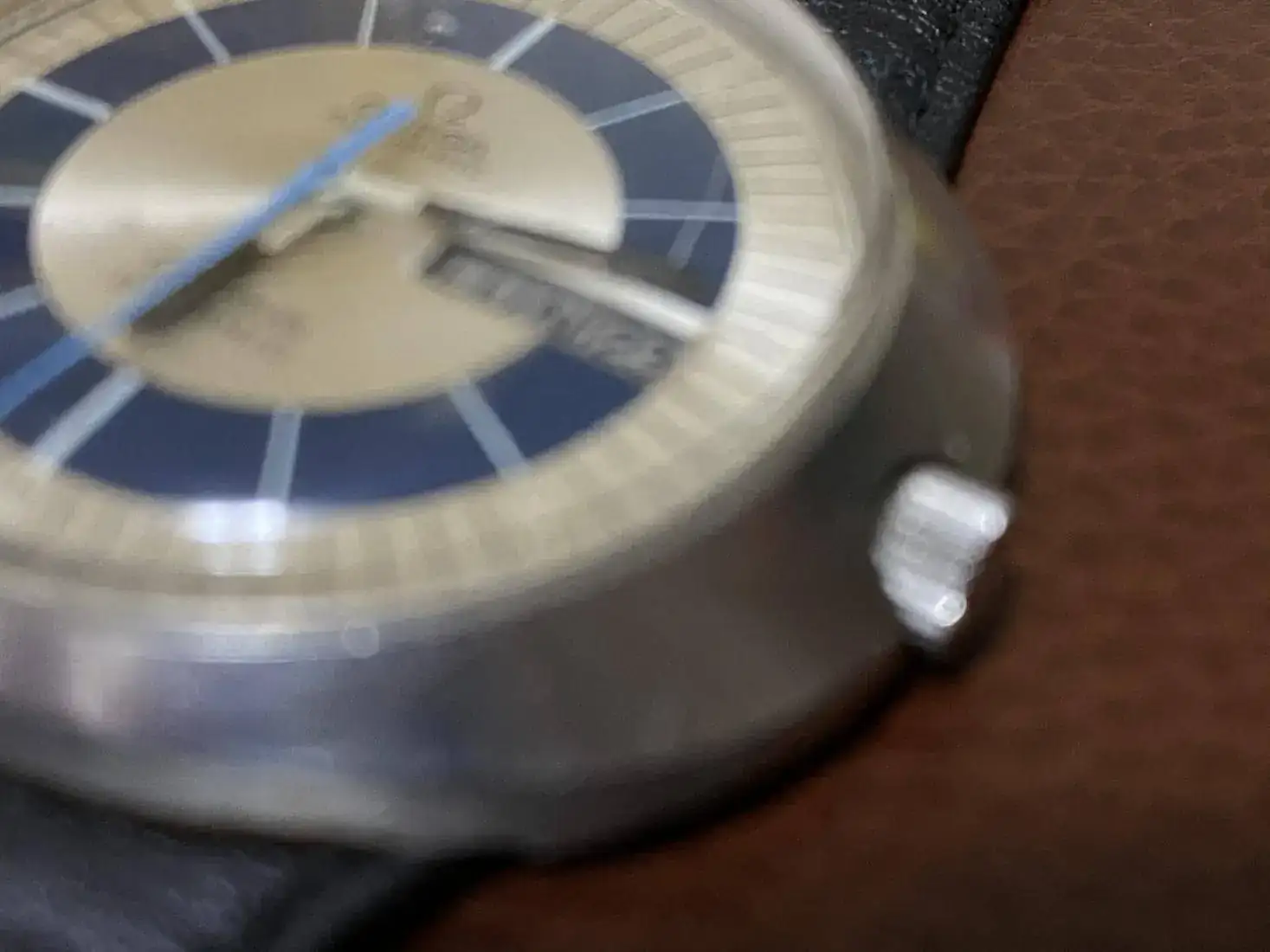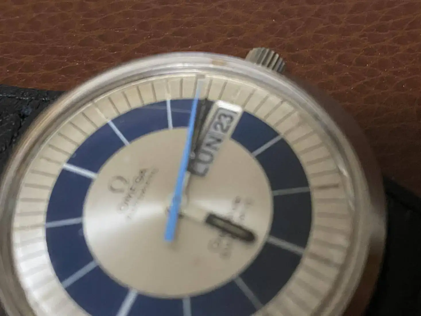ESFERA: azul y blanco hueso. Tiene una pequeña raya en el margen derecho totalmente de origen desconocido pues el reloj se compro de resto de joyeria y lo unico que hizo el jeta fue quedarse la hebilla.
