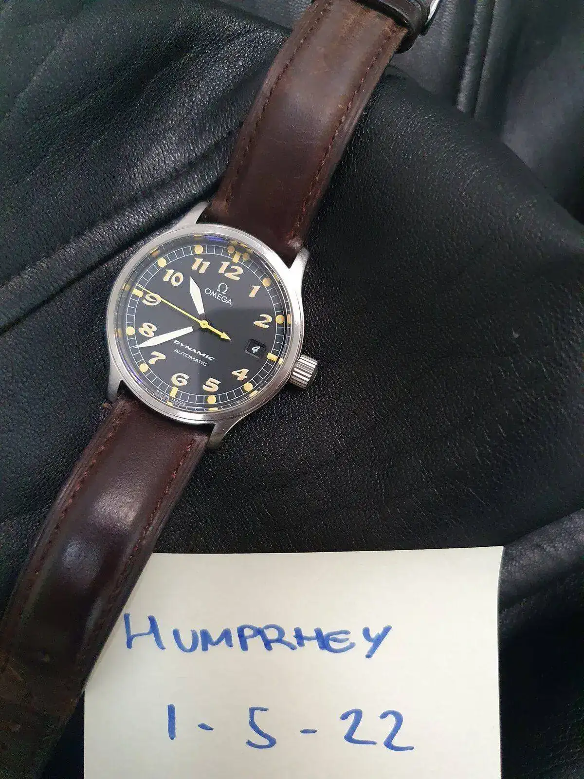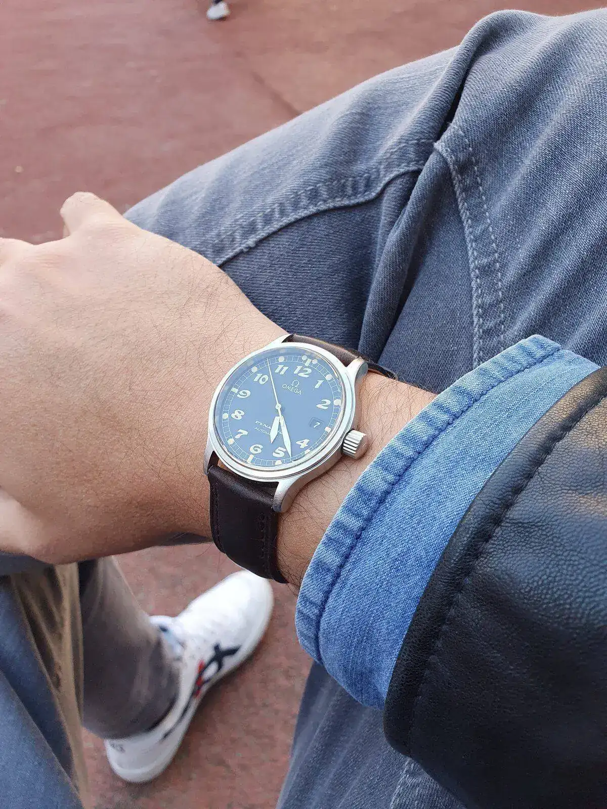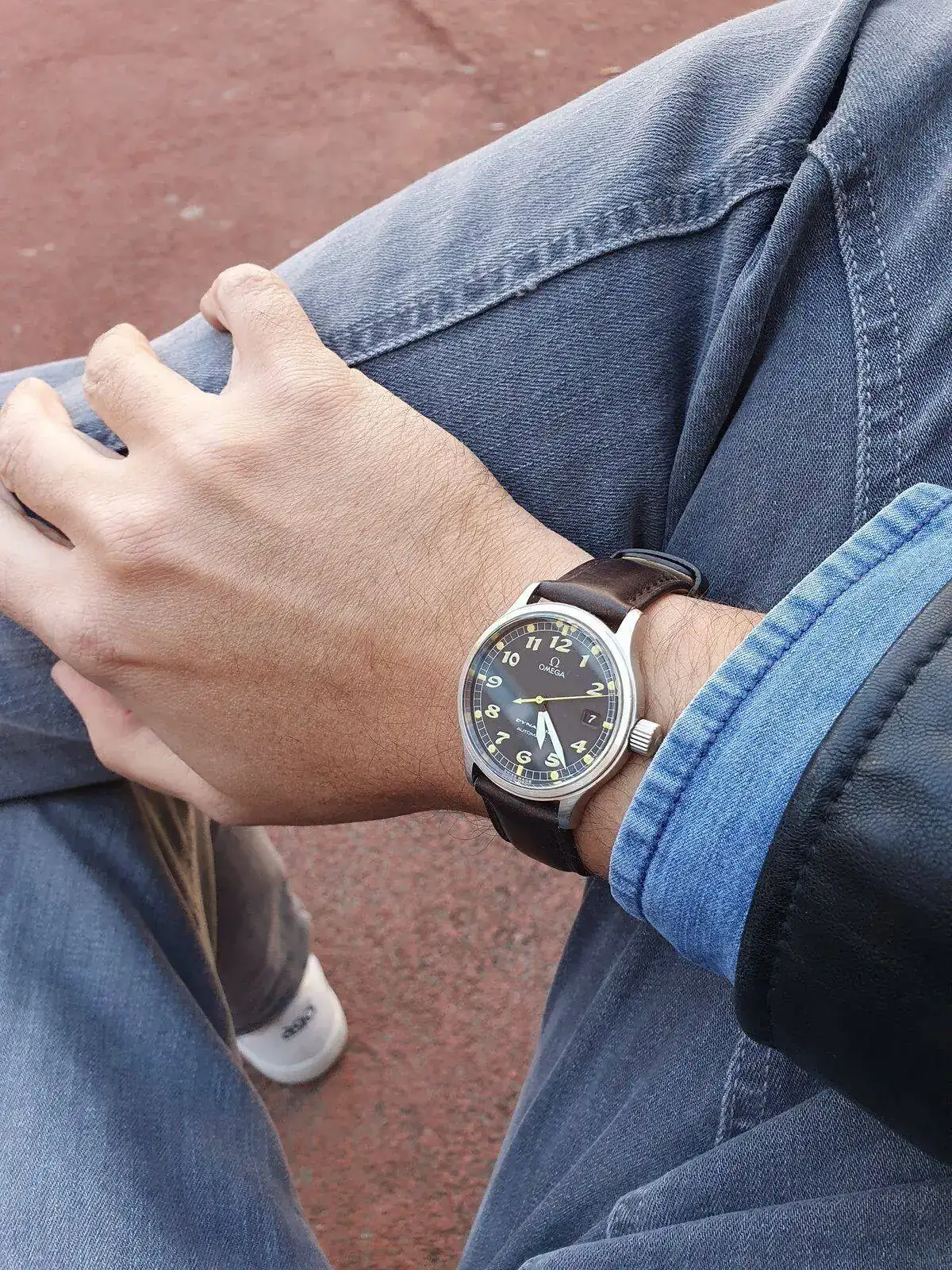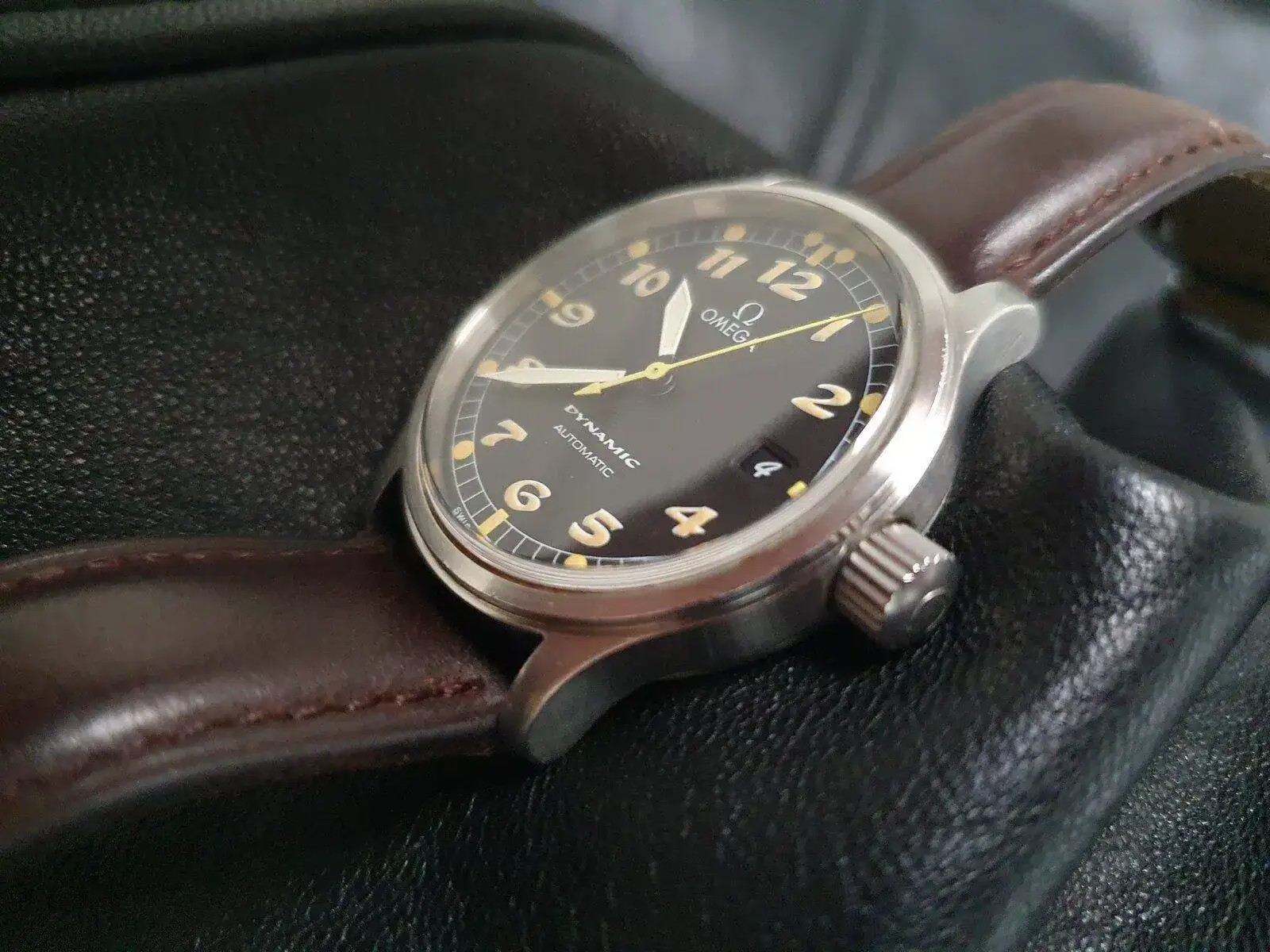 Tras mucho pensármelo, saco a la venta un reloj muy especial y cada vez más difícil de encontrar. La última generación que Omega lanzó de su gama Dynamic, un homenaje a los relojes que la marca fabricó para la RAF durante la II Guerra Mundial. Esta unidad se trata de una de las primeras, ya que tiene los números y de tritio (luego se sustituyeron por superluminova blanca), lo que le da un aspecto mucho más fiel a los RAF originales, como este: https://www.analogshift.com/products/omega-raf-53-thin-arrow. Su tritio amarillo tostado intenso precioso en numerales e índices aún mantiene la luminosidad.