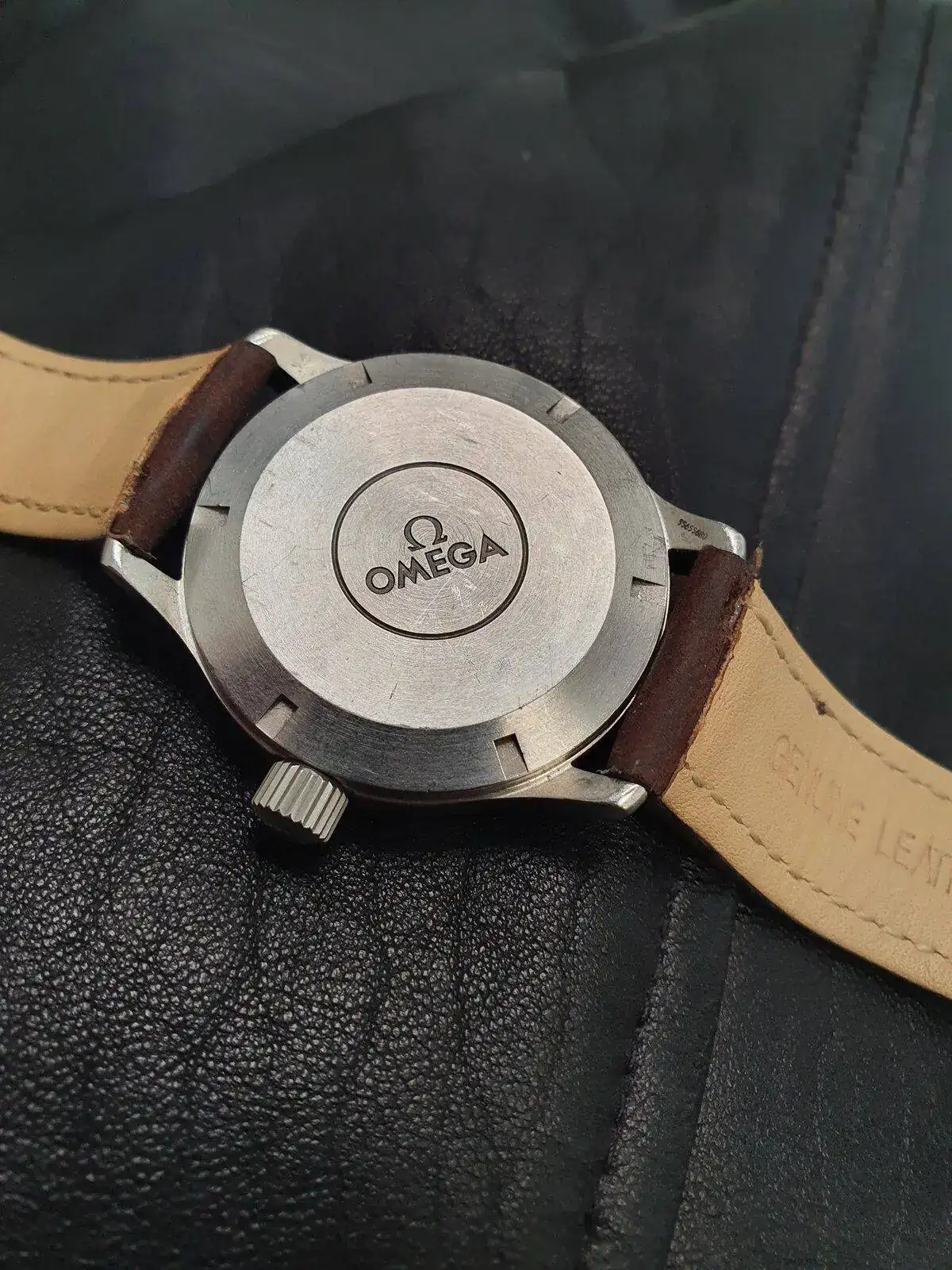Lo entrego con una correa genérica de cuero que le queda perfecta y regalo una nato gris que le va genial. El reloj va con pasadores especiales, de mayor grosor que los normales para que estéis tranquilos si le queréis dar un uso "aventurero". En resumen, un reloj a punto de ser vintage, de la época moderna de Omega, cada vez más cotizado, con un calibre inmortal, datario, corona y fondo roscado, una estética atractiva y un tamaño comodísimo que, no obstante, llena bien la muñeca (adjunto foto en mi muñeca de 17cm para que os hagáis una idea). Un reloj que solo estuvo 5 años en producción y que empezó con la moda, ahora tan habitual, del concepto "heritage".