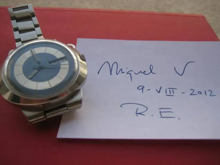 Se entrega con su armis original Omega bastante completo de eslabones y su estado de marcha es destacable ya que acaba de pasar una revisión rutinaria en mi relojero de confianza.