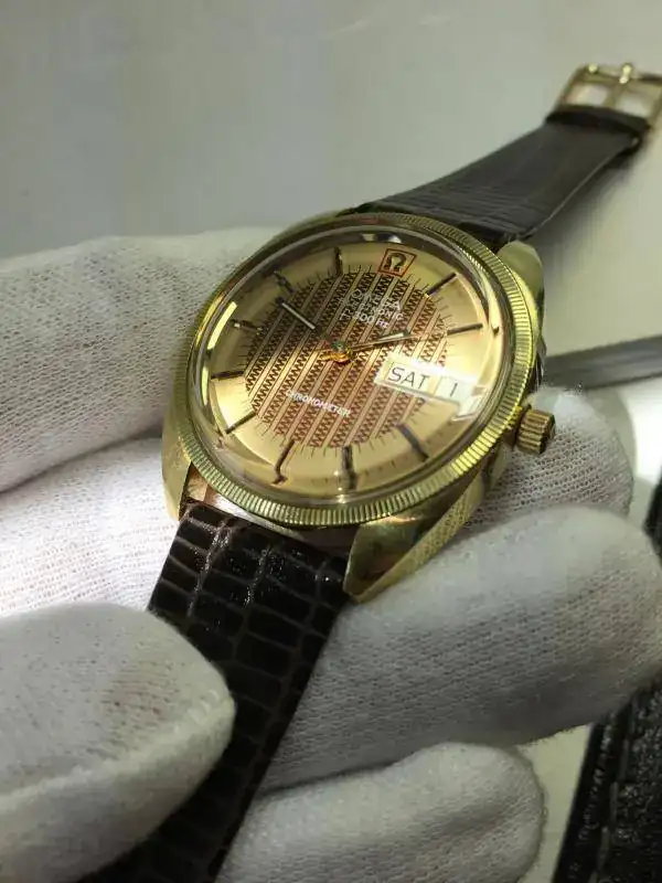 Pocos fueron en la época los que adquirieron un fabuloso movimiento de diapasón como este omega que es una delicia y que funciona a la perfección, decir que dispone del calibre 1260 que fue el siguiente modelo del 1250 montado solo con numerario, este disponde de paso de fecha y numeración rápida, la condición del reloj es fantástica y el reloj no ha sido ni pulido ni restaurado lo que lo hace mas especial si cabe, dial y saetas originales totalmente nuevas, corona firmada con el logo de omega, plexi original de omega con el logo en el centro, caja en baño de oro de 20 micras como nueva, bisel estriado tipo rolex, el reloj viene montado con una correa de reptil original tipo tiburón de medidas 18/14 que le queda espectacular y también tengo la original del modelo que también la entrego que es una speidel elástica y ajustable, también tengo una copia del manual original del reloj que la entregare junto con el reloj y las correas.
